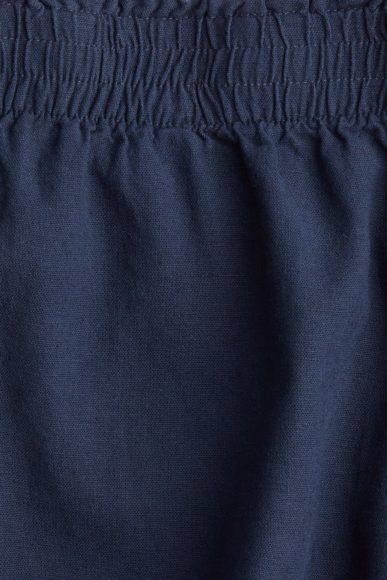 Loose-fit shorts in a woven linen blend. High waist, smocked elastic at waistband, and discreet side pockets.