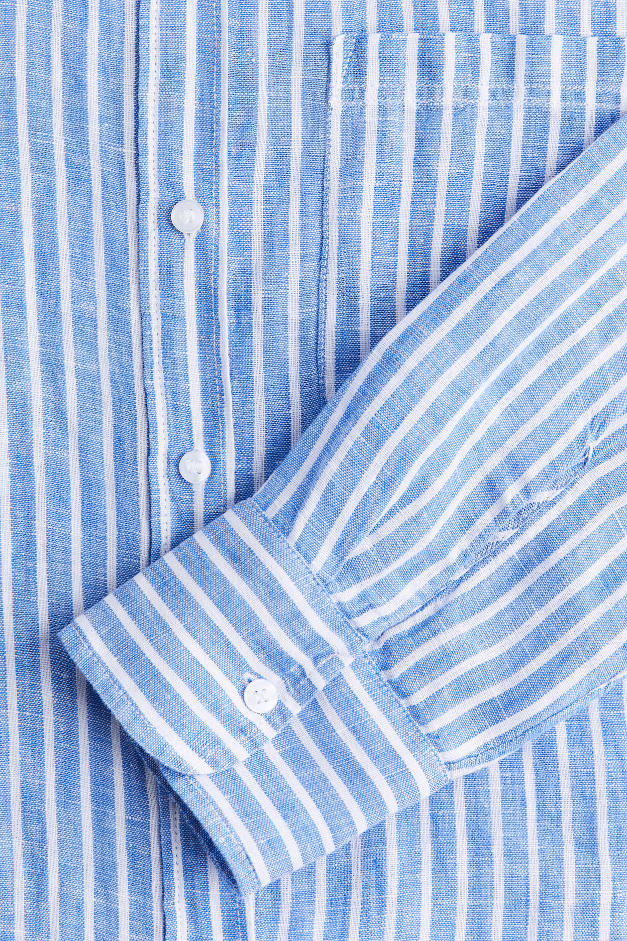 Shirt in airy linen. Collar, buttons at front, and a patch chest pocket. Gently dropped shoulders, long sleeves with button at cuffs, and double-layered yoke at back. Gently rounded hem.