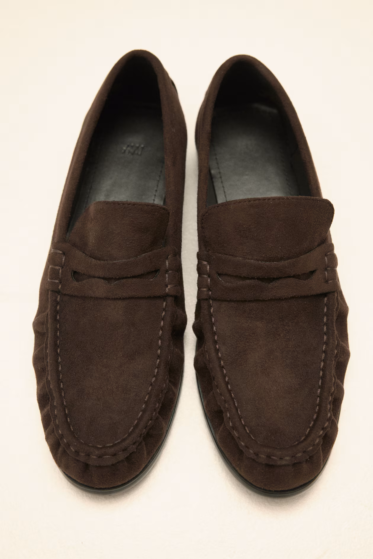 Loafers with a moccasin seam and a penny keeper at front. Jersey lining.