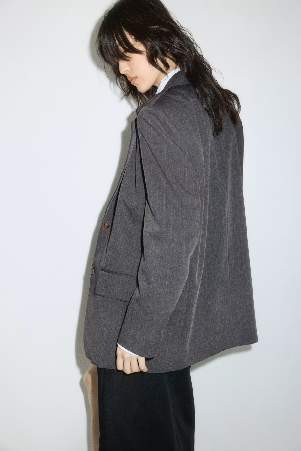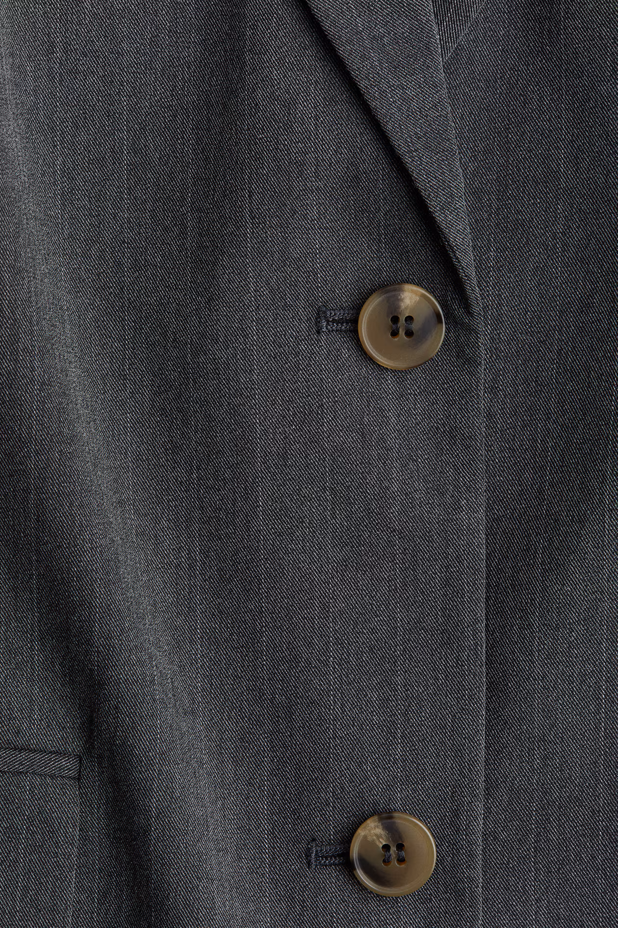 Long, single-breasted blazer in woven fabric. Notched lapels, welt front pockets with a flap, shoulder pads, and a slit at cuffs with button. Lined.