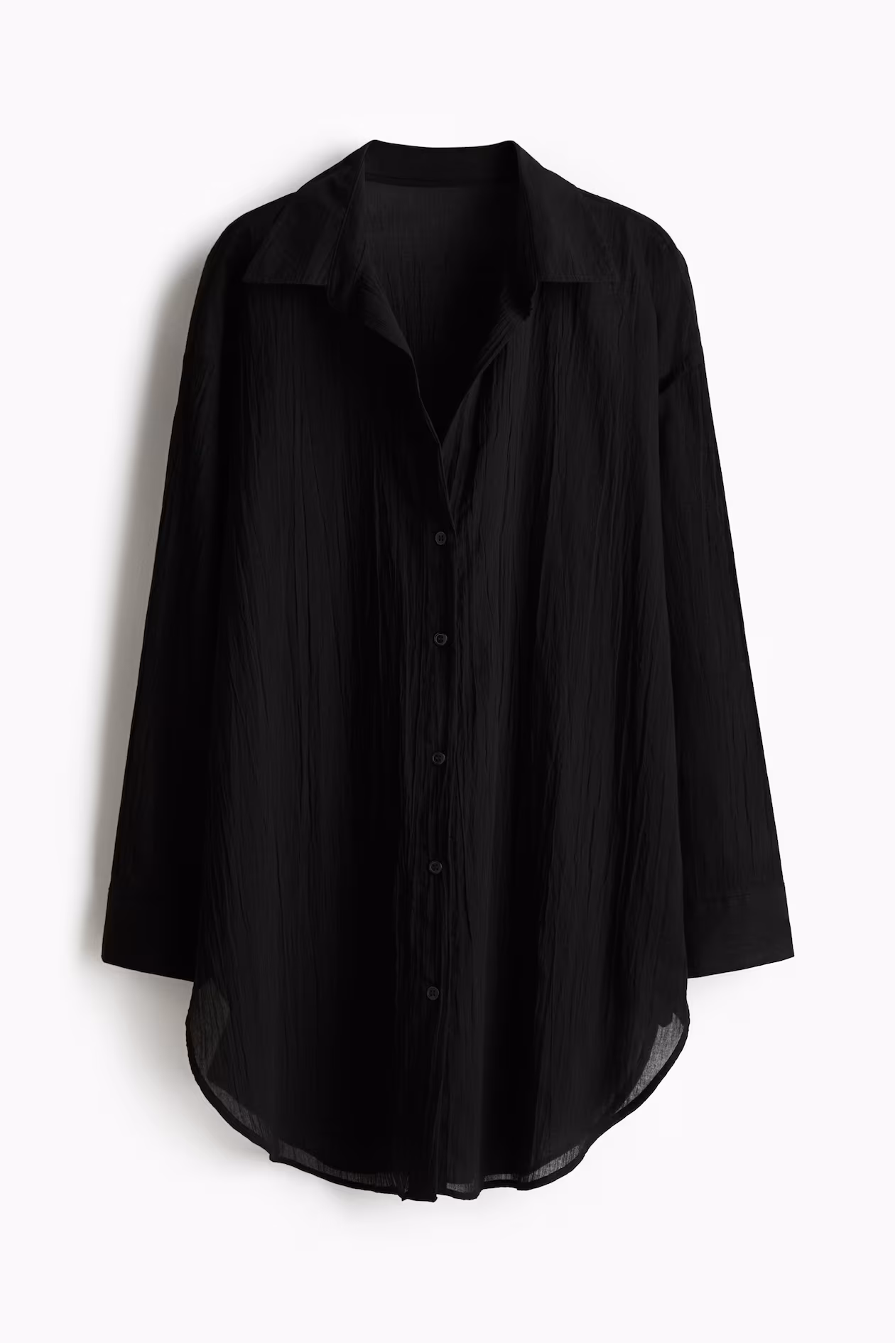 Long, loose-fit shirt in airy, woven cotton fabric. Collar, buttons at front, dropped shoulders, and long sleeves with button at cuffs. Rounded hem.