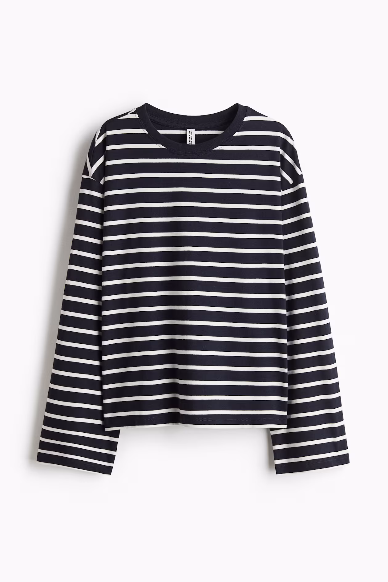 Boxy, loose-fit top in soft cotton jersey. Round, ribbed neckline, dropped shoulders, and long sleeves.