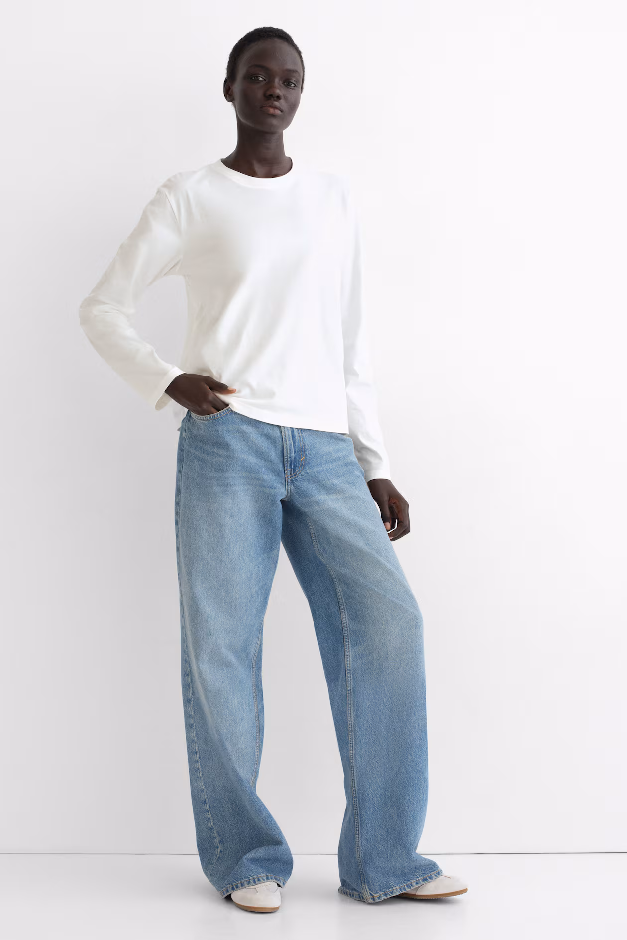 Top in soft cotton jersey. Round neckline, long sleeves, and a straight-cut hem.