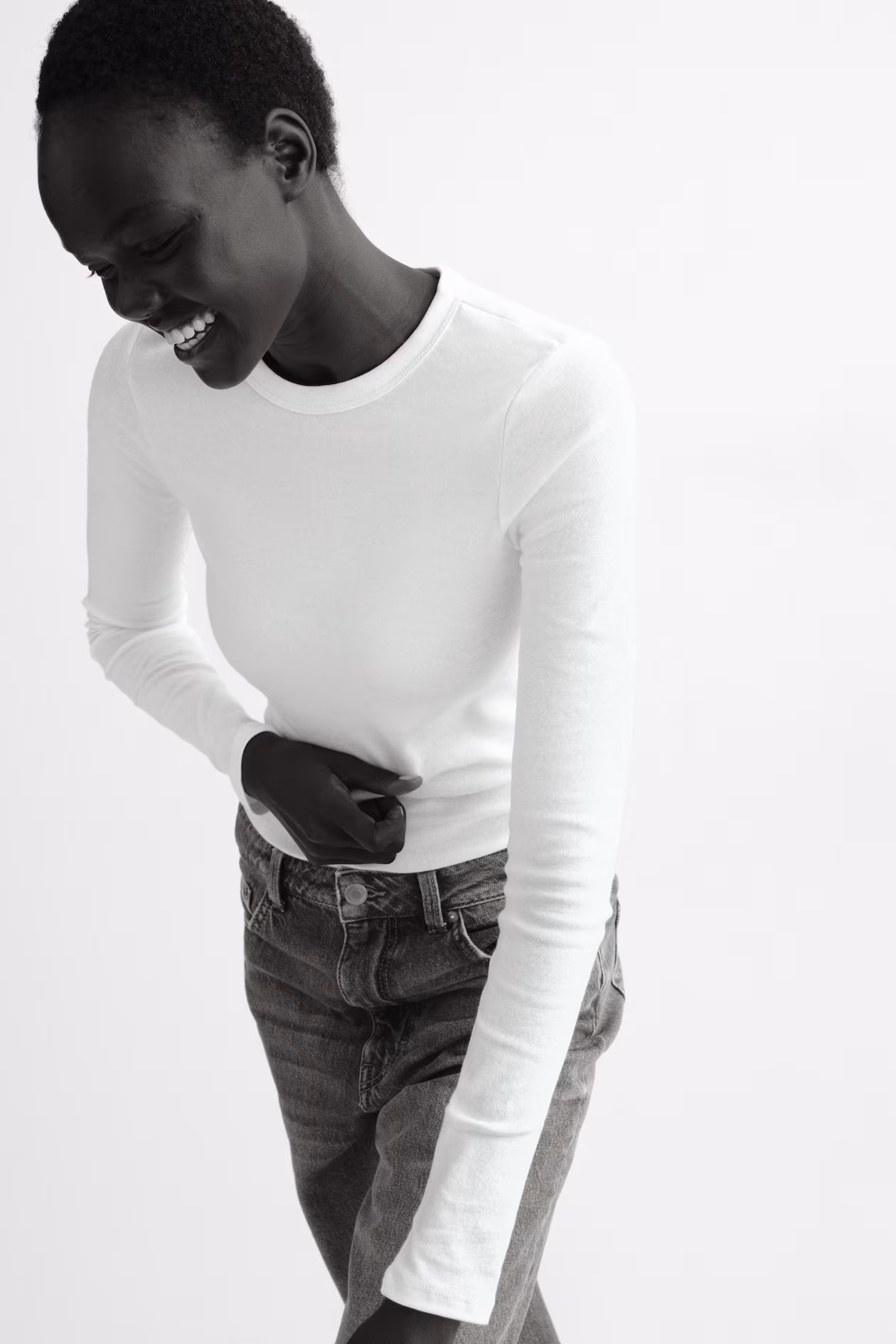 Fitted top in cotton jersey. Round neckline and long sleeves.