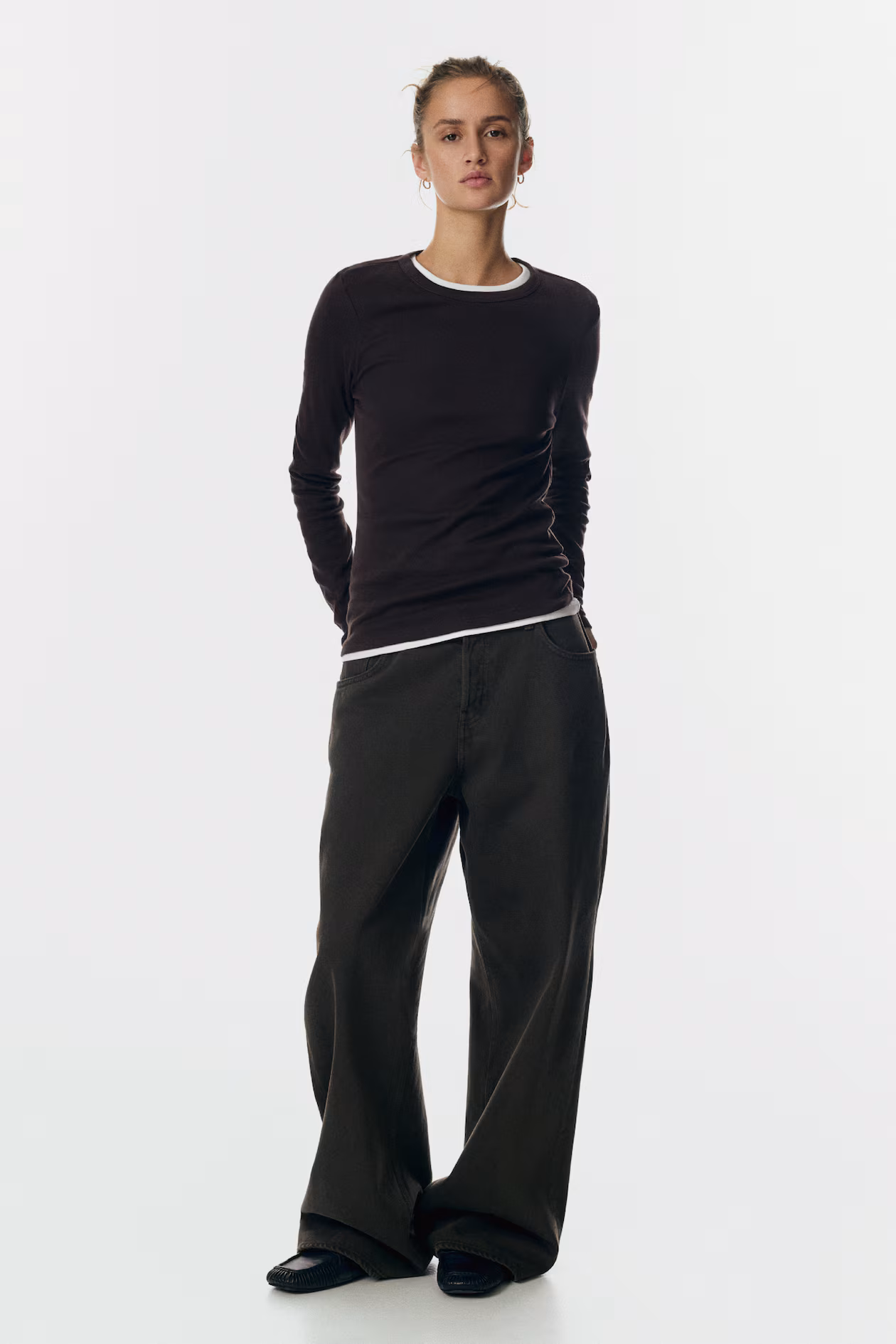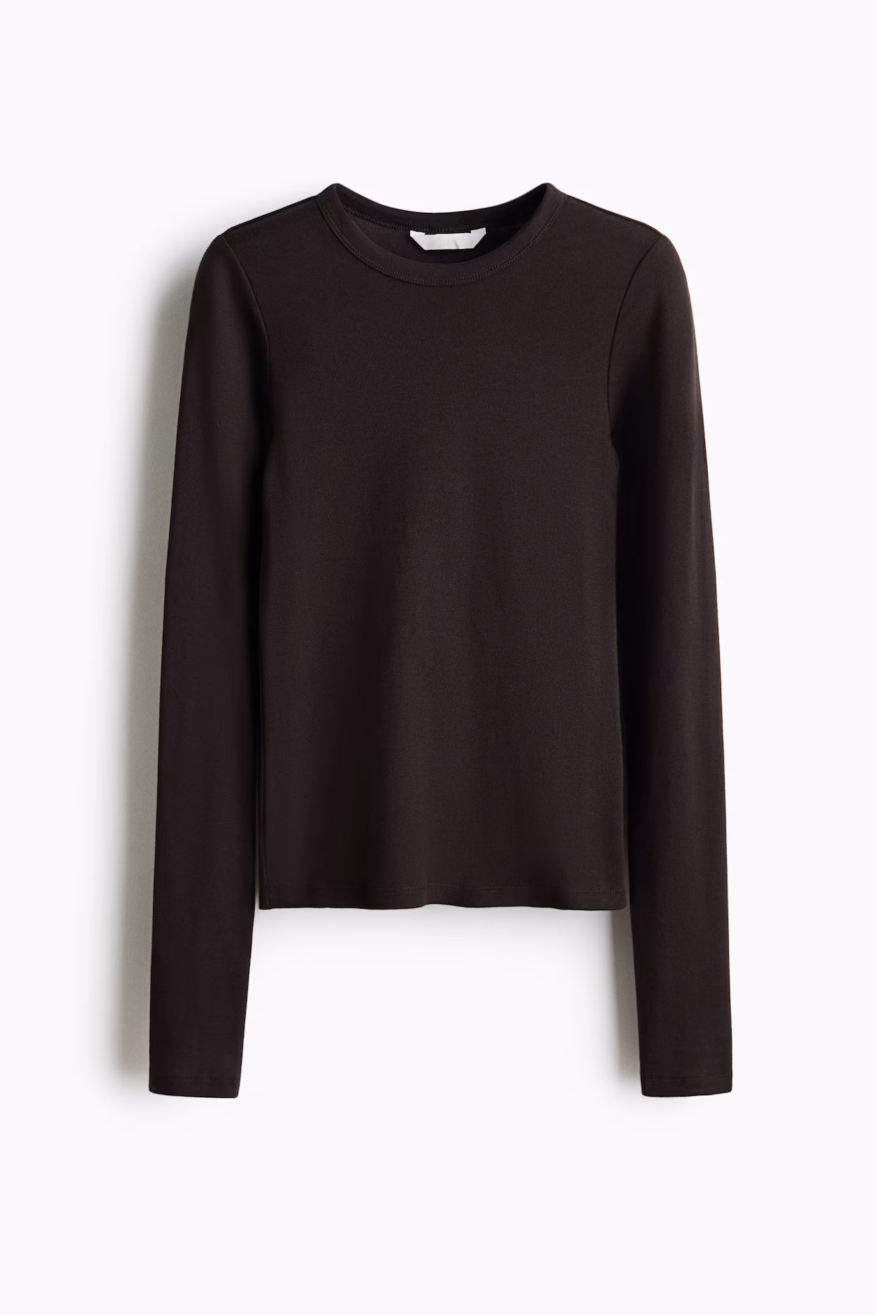 Fitted top in cotton jersey. Round neckline and long sleeves.