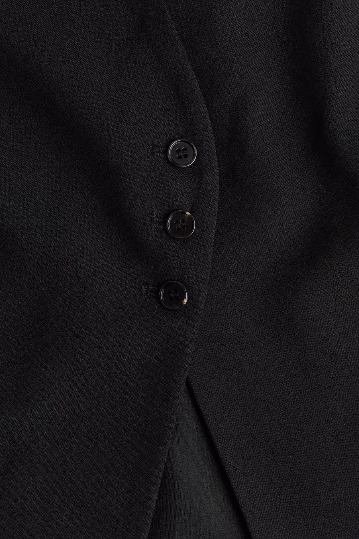 Long vest in woven fabric. V-neck and three delicate buttons at front. Lined.