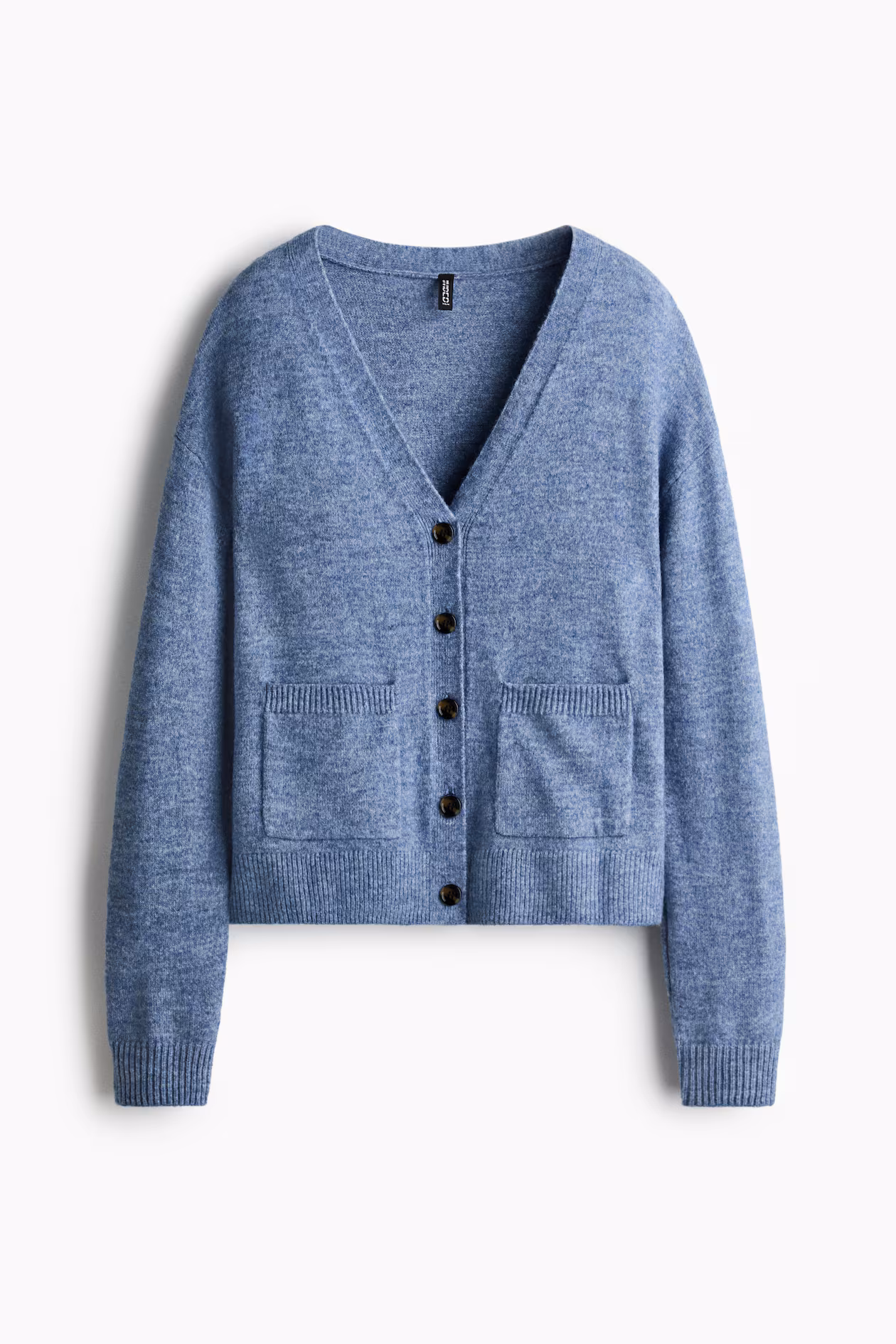 Loose-fit cardigan in a soft knit. V-neck, buttons at front, and open front pockets. Dropped shoulders, long sleeves, and ribbing at cuffs and hem.