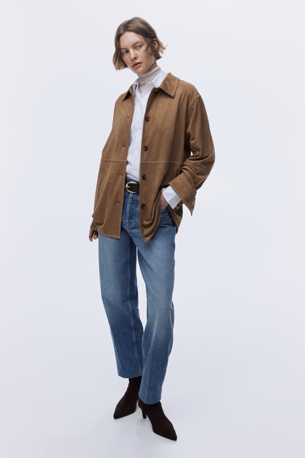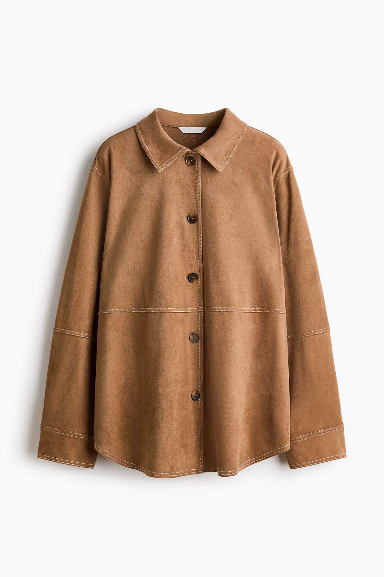 Loose-fit shirt in heavy jersey with a soft, napped finish. Collar, buttons at front, and long sleeves with button at cuffs. Gently rounded hem.