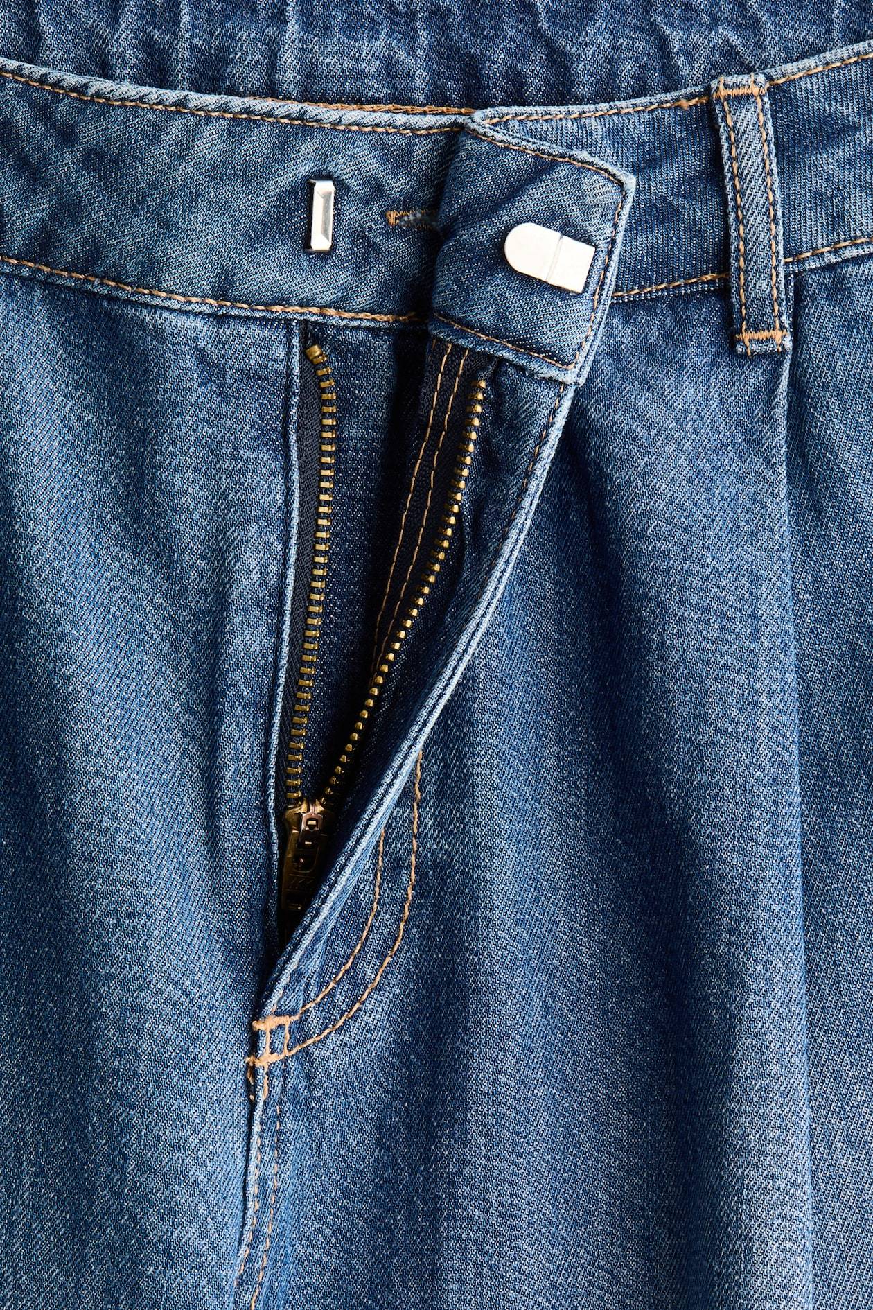 Jeans in rigid denim made from a cotton and lyocell blend that feels firm at first, softening and relaxing with wear. Loose fit from waist to hip and wide cut from thigh to hem. Regular waist, zip fly with concealed hook-and-bar fastener, and pleats at front. Diagonal side pockets and mock welt back pockets. Wide, regular-length legs, designed to fall at top of foot with little or no stacking. A denim statement that goes the distance.