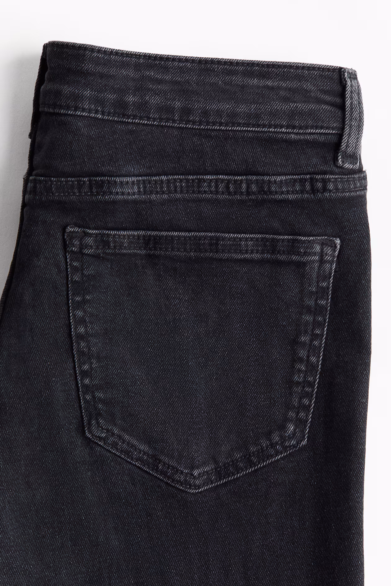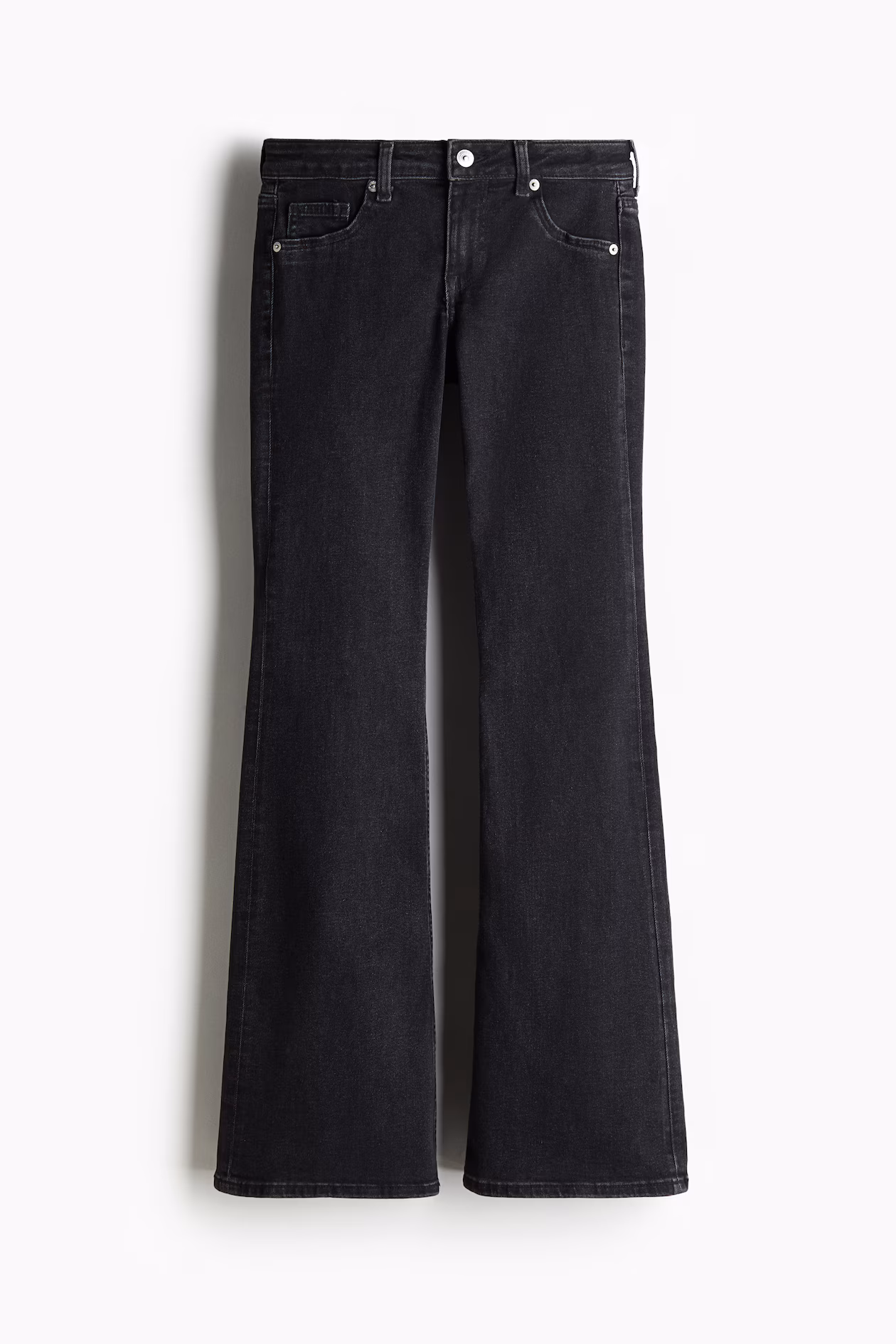 Jeans in denim with gentle stretch for good comfort. Slim fit from waist to thigh and flared from knees to hems. Low waist and zip fly with button. Mock front pockets, a coin pocket, and open back pockets. Flared, regular-length legs, designed to fall at top of foot with little or no stacking. A fashion icon from the 70s to now.