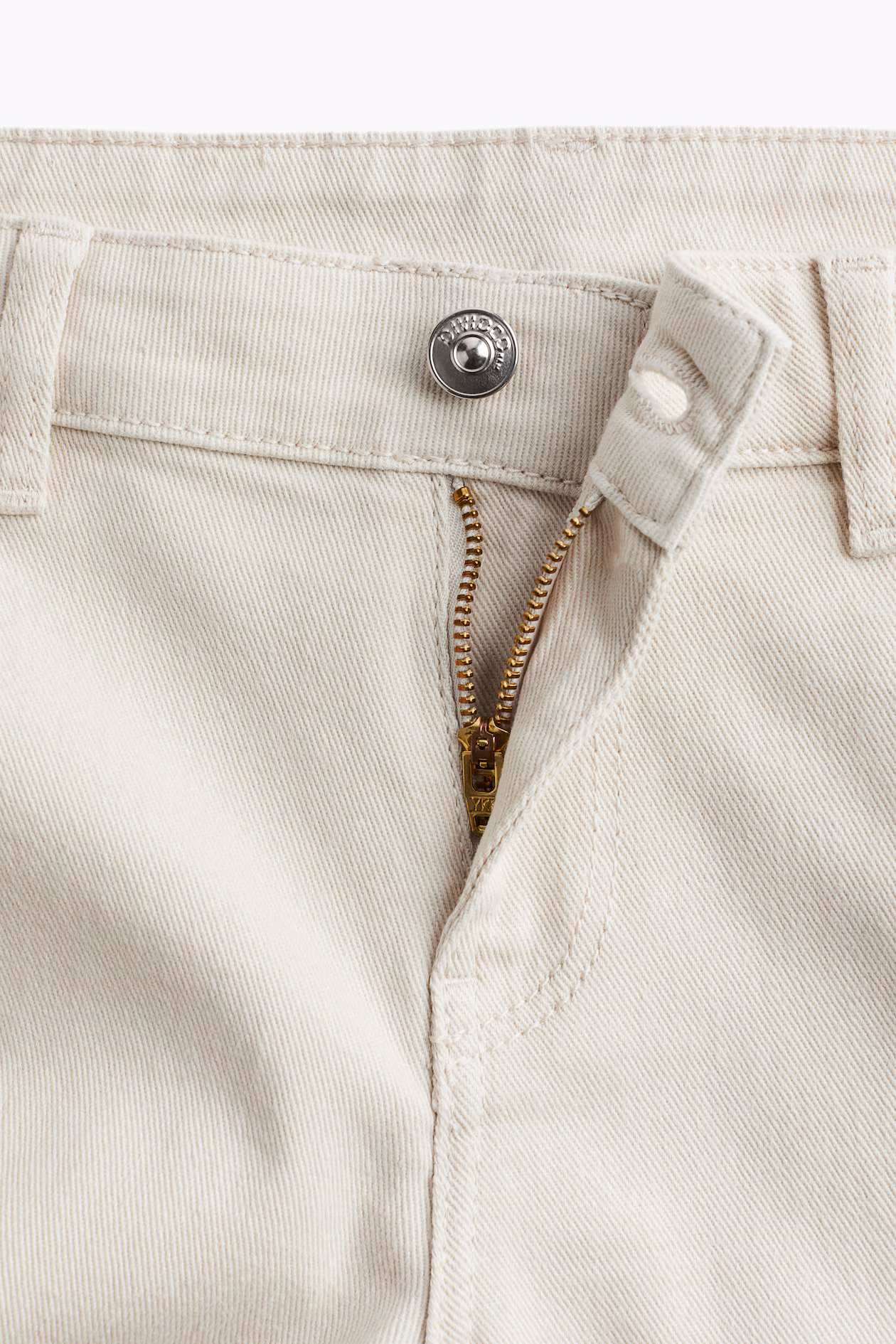 Pants in cotton twill. Low waist, zip fly with button, mock front pockets, and regular back pockets. Wide legs.