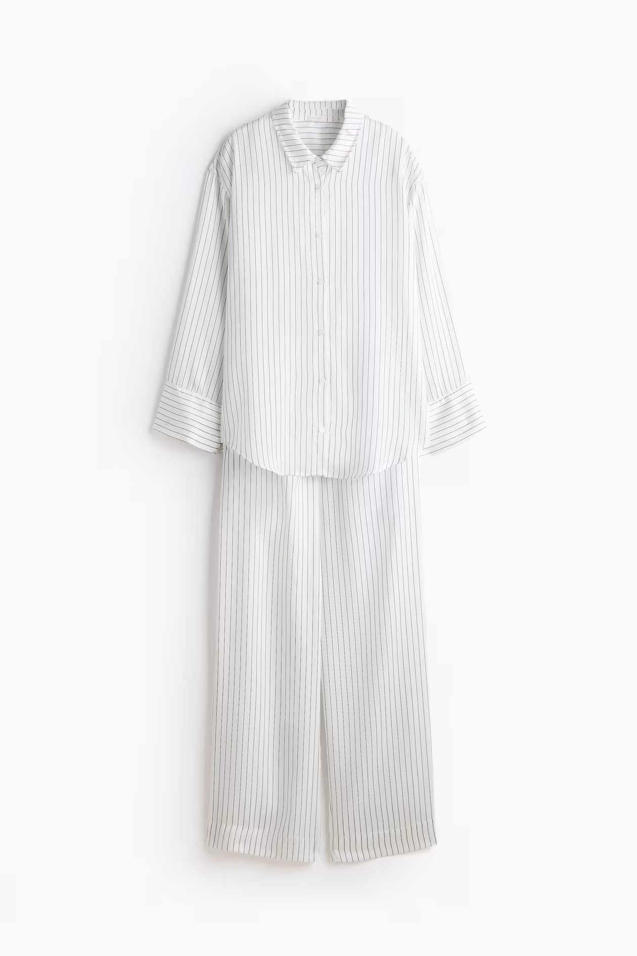 Pajamas in woven lyocell with a shirt and pants. Long-sleeved shirt with a collar, buttons at front, and a rounded hem. Pants with a drawstring and covered elastic at waistband, and side-seam pockets. Fabric made from lyocell is super soft, wrinkle resistant, and nicely draped.
