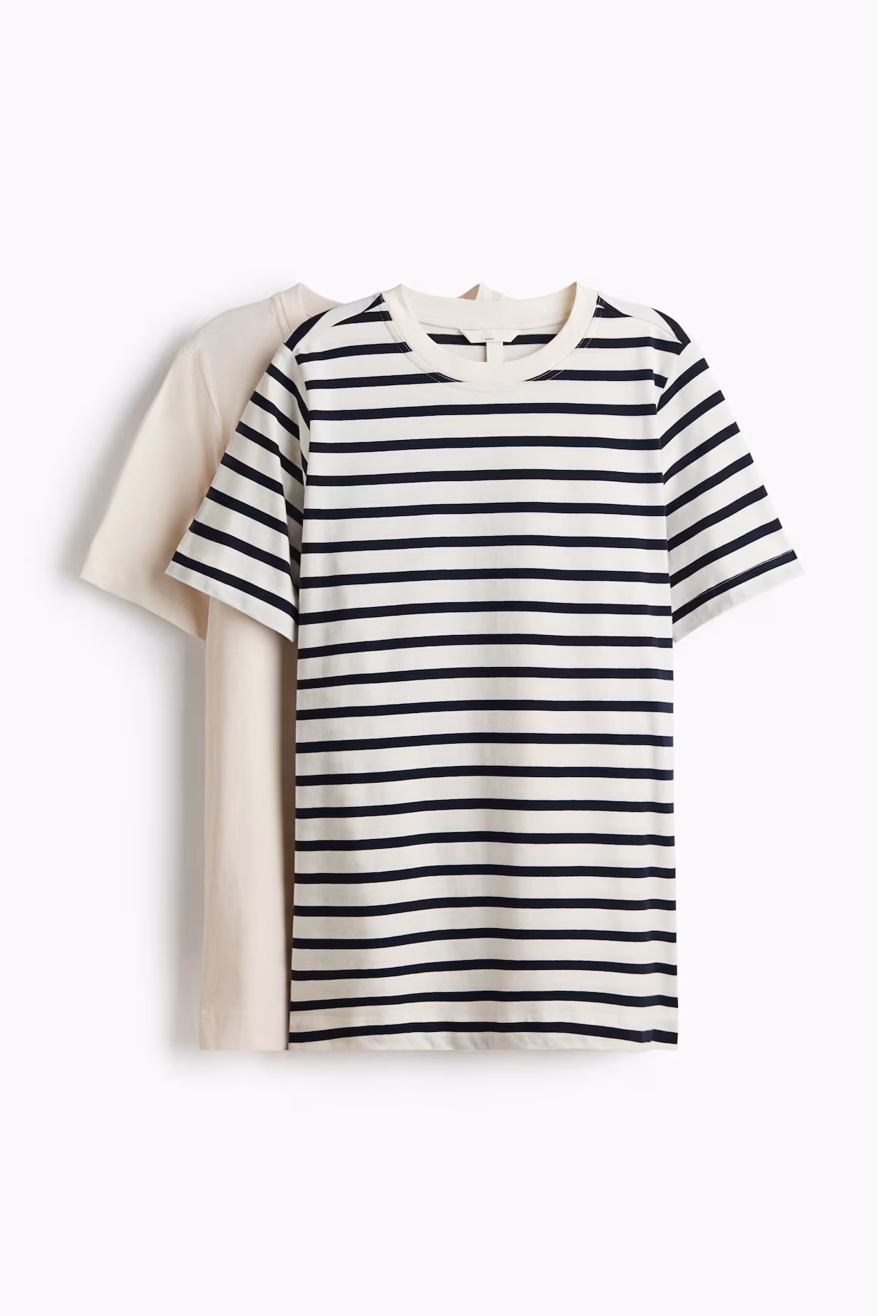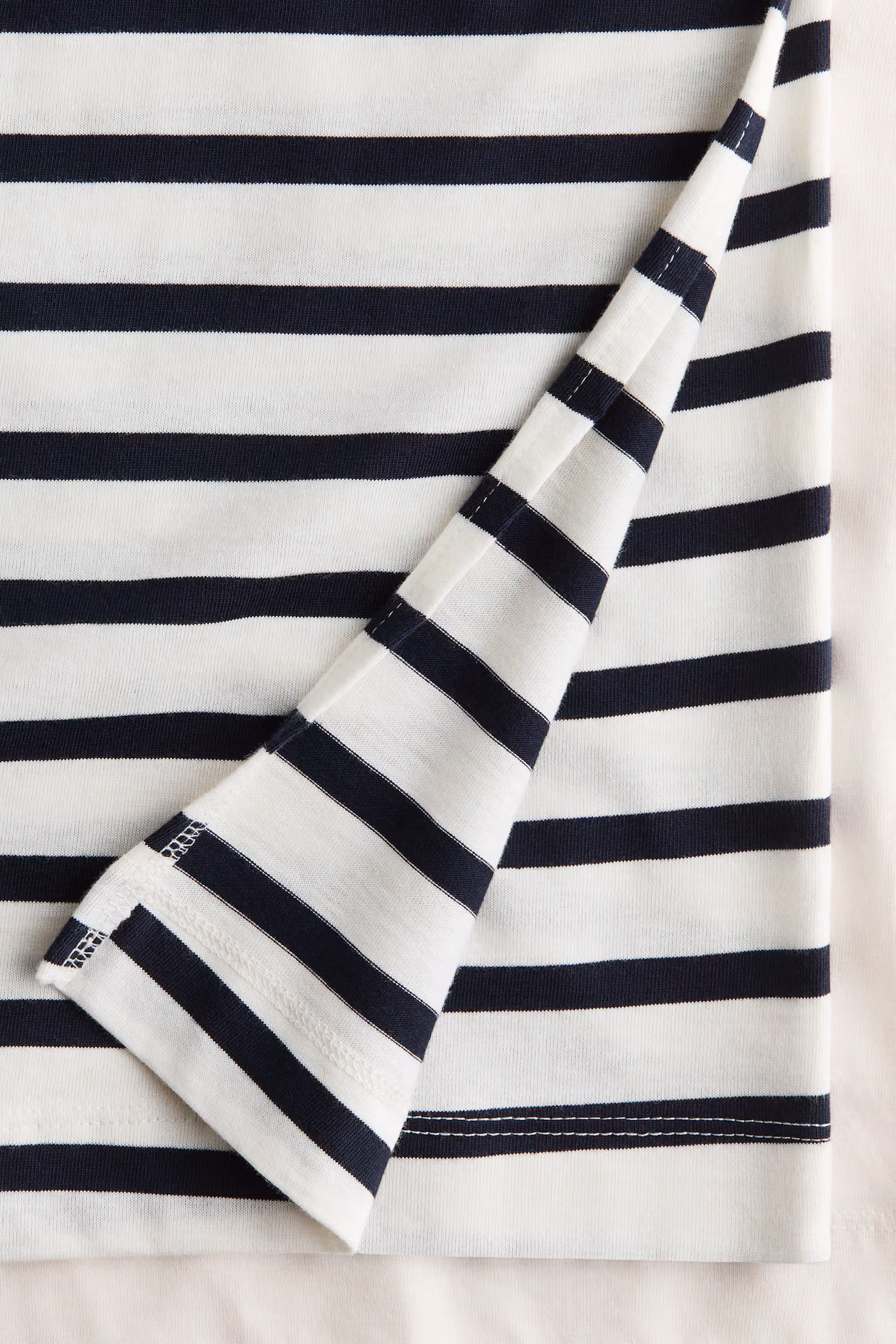 Classic T-shirt-style nursing tops in soft jersey with a double layer at front and a practical inner top for easier nursing access. Round neckline and dropped shoulders.