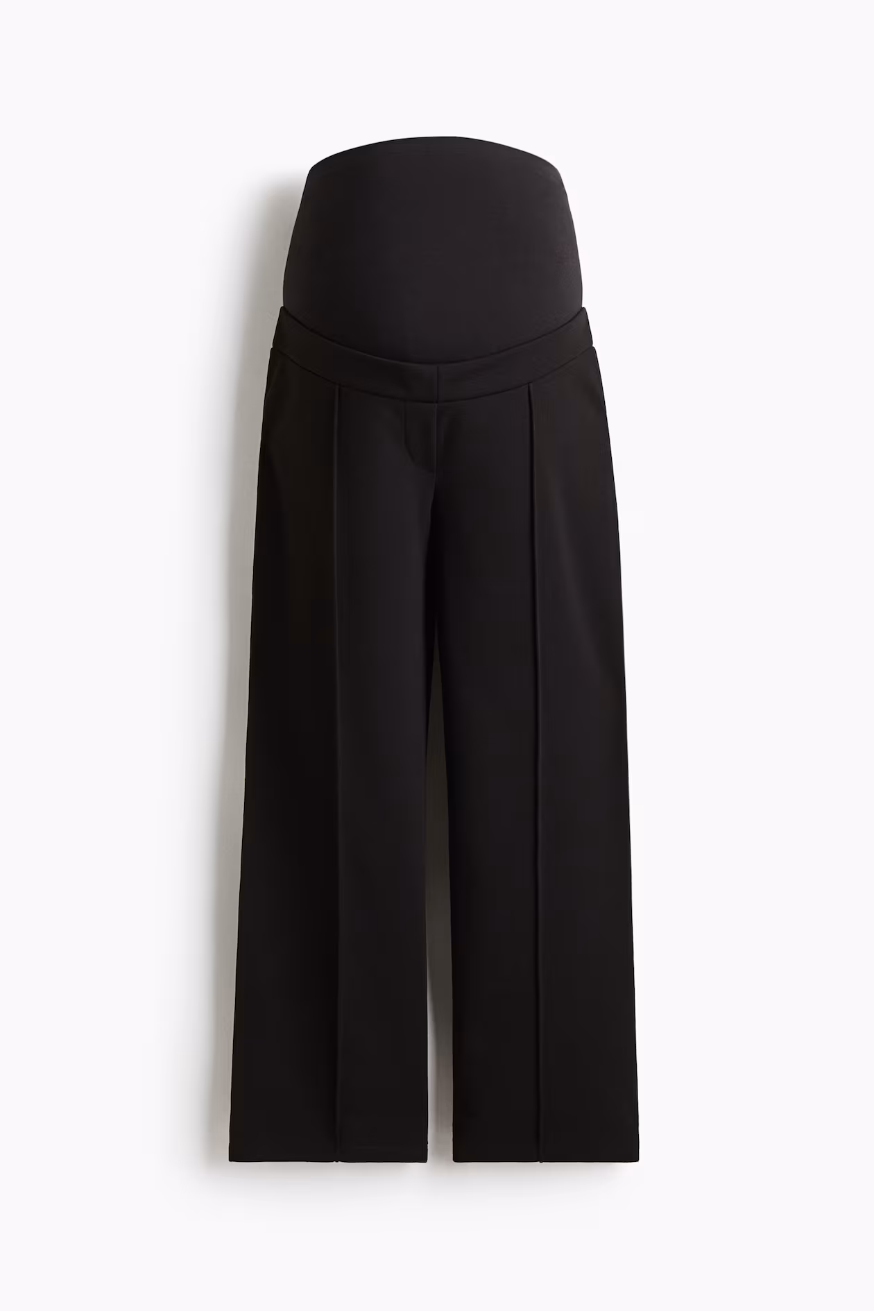 Ankle-length pants in thick interlock jersey. Wide jersey waistband panel for best fit, elastic at back of waistband, and a mock fly. Straight legs with stitched creases at front for a tailored look.
