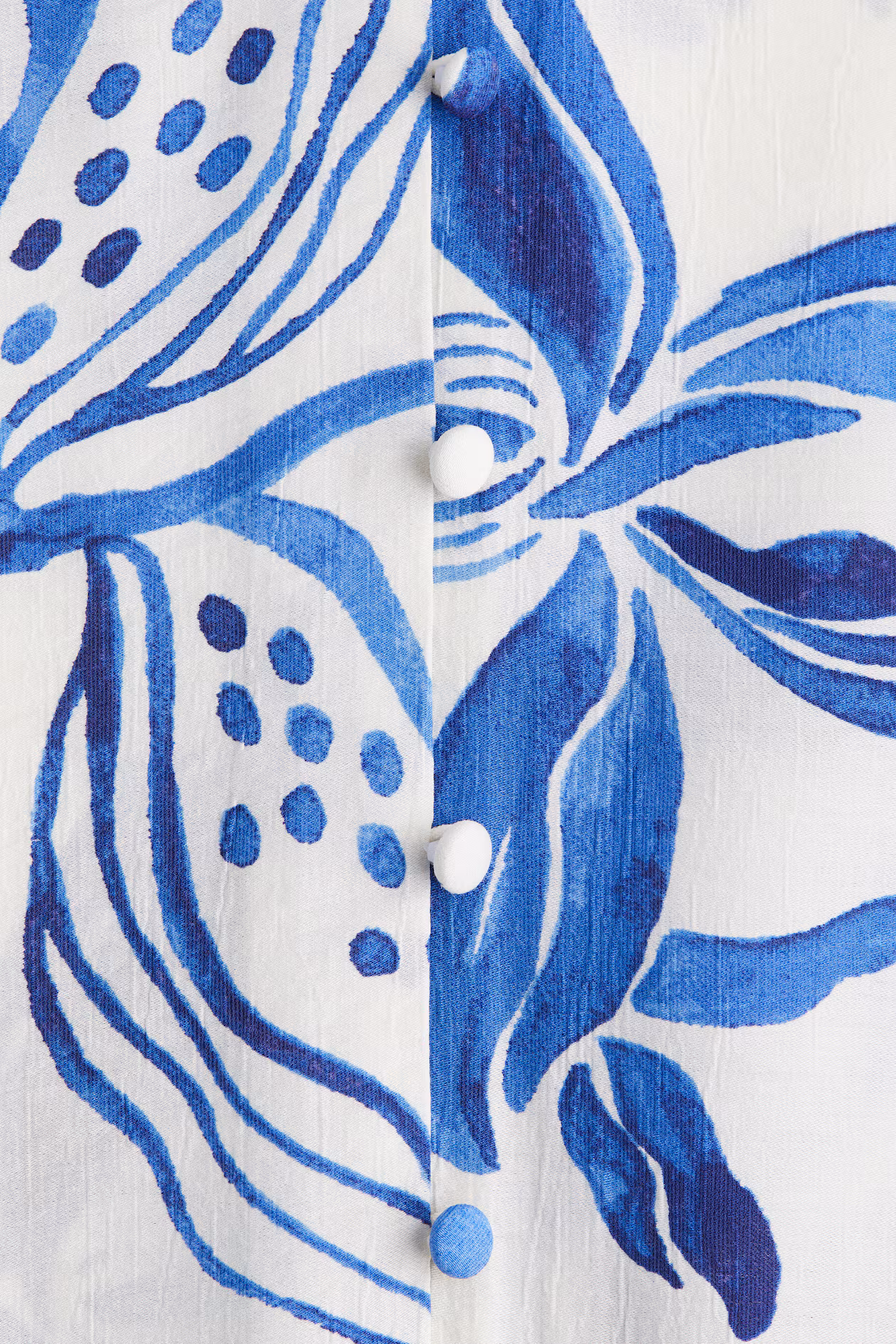 Ankle-length dress in slightly textured, woven fabric. V-neck, covered buttons at front, and removable tie-belt below bust. Long, raglan balloon sleeves with narrow elastic at cuffs. Gathered tier above knees for added volume. Unlined. For wear during and after pregnancy.