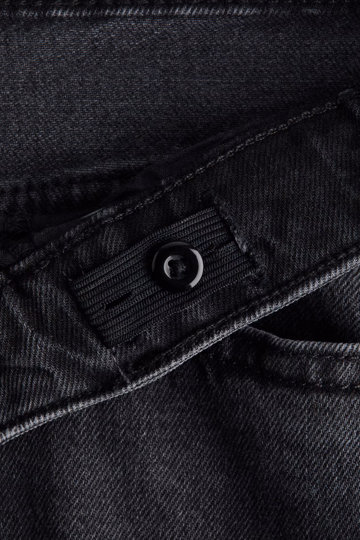 Loose-fit, 5-pocket jeans in cotton denim with gentle stretch for added comfort. Low waist, zip fly with button, covered elastic at sides, and wide legs. Adjustable elastic concealed in waistband for adjustment of waist width. For wear during and after pregnancy.