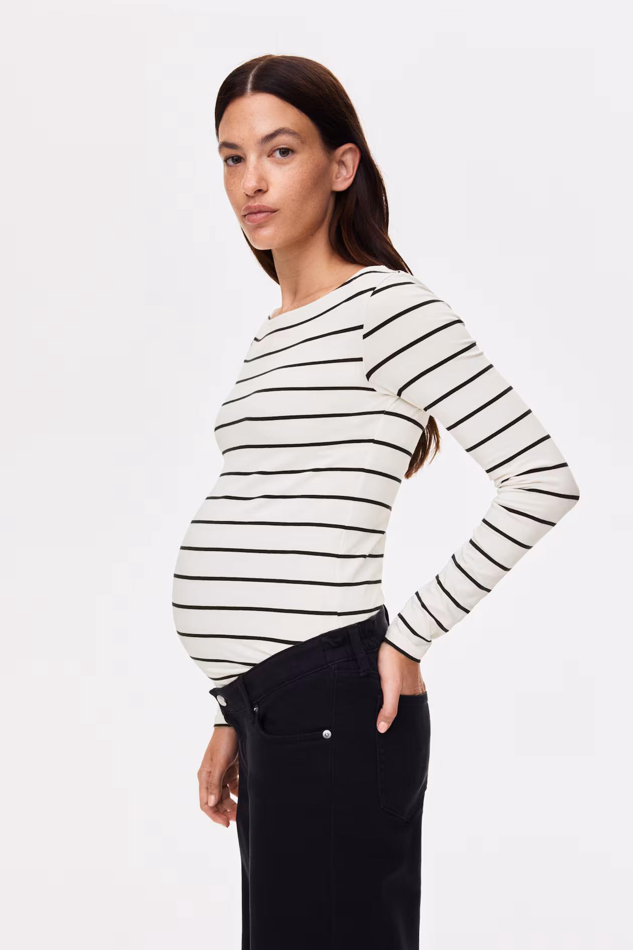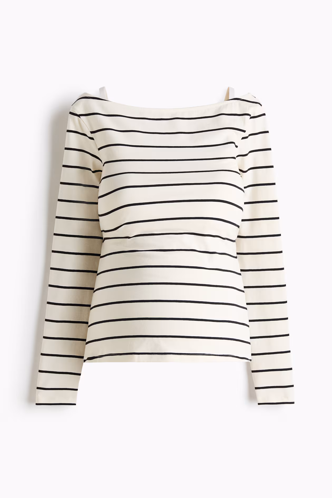 Fitted top in soft cotton jersey. Boat neck and long sleeves.