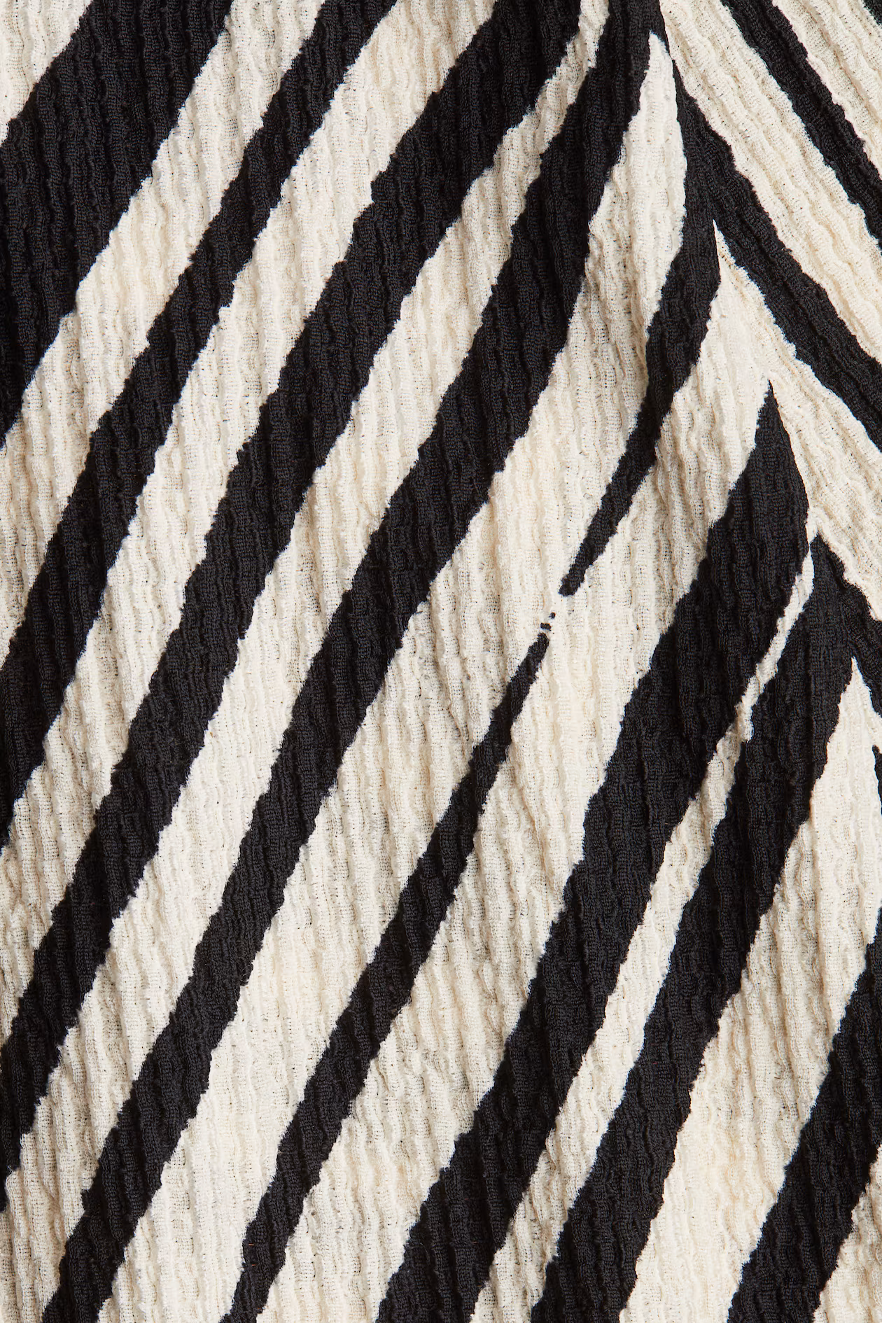 Calf-length dress in crinkled jersey with short sleeves, a V-neckline and a wrapover front with ties at one side and a concealed button at the other. Partly lined.