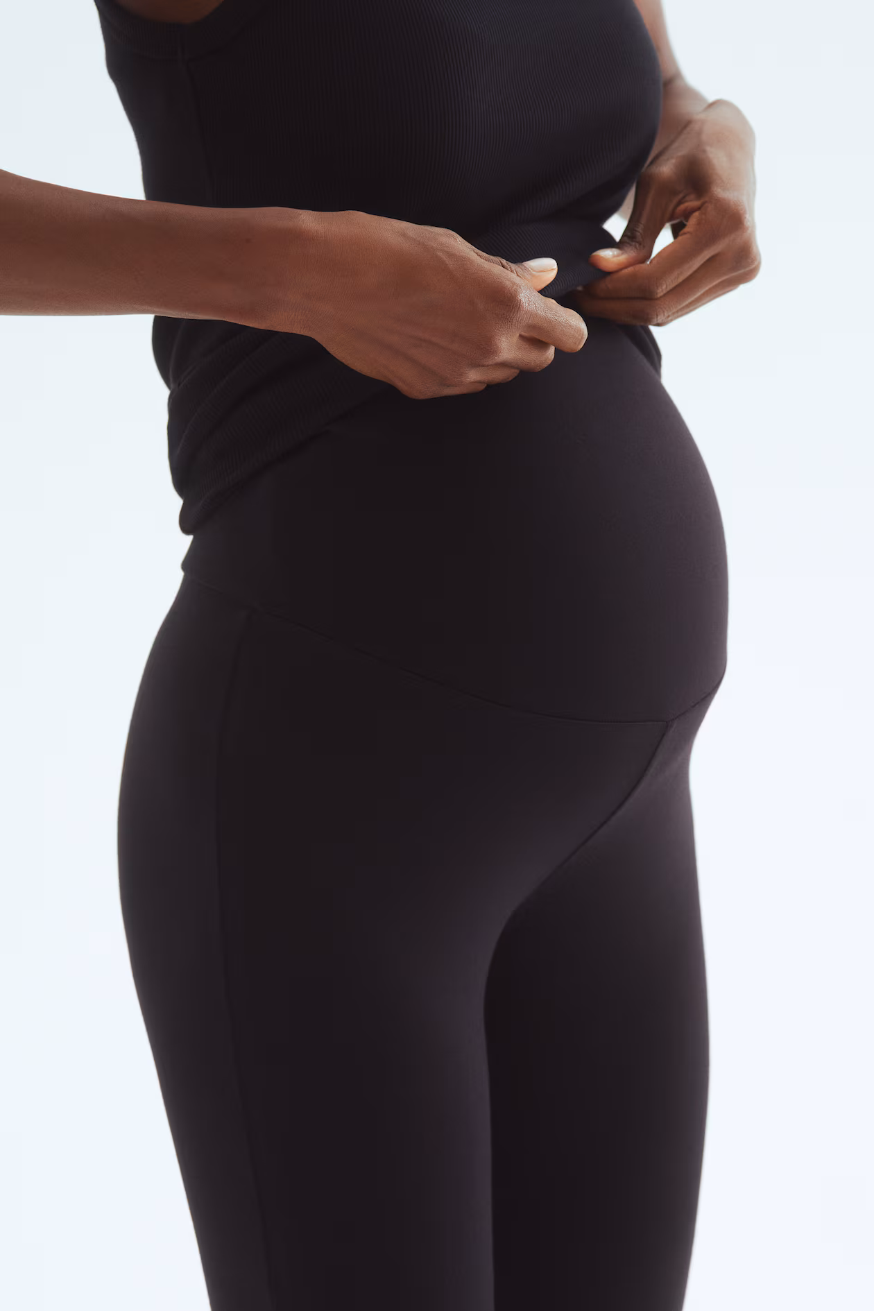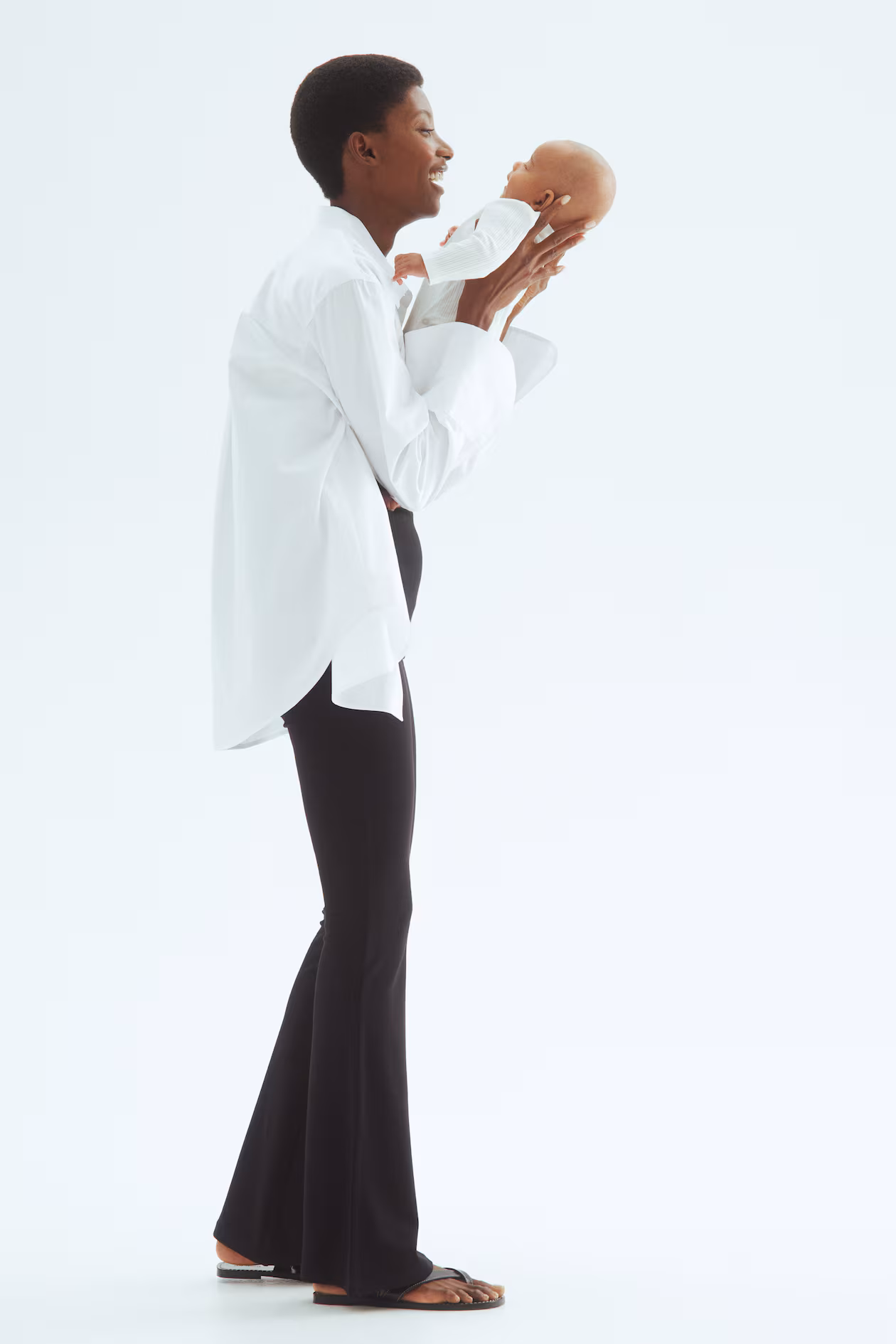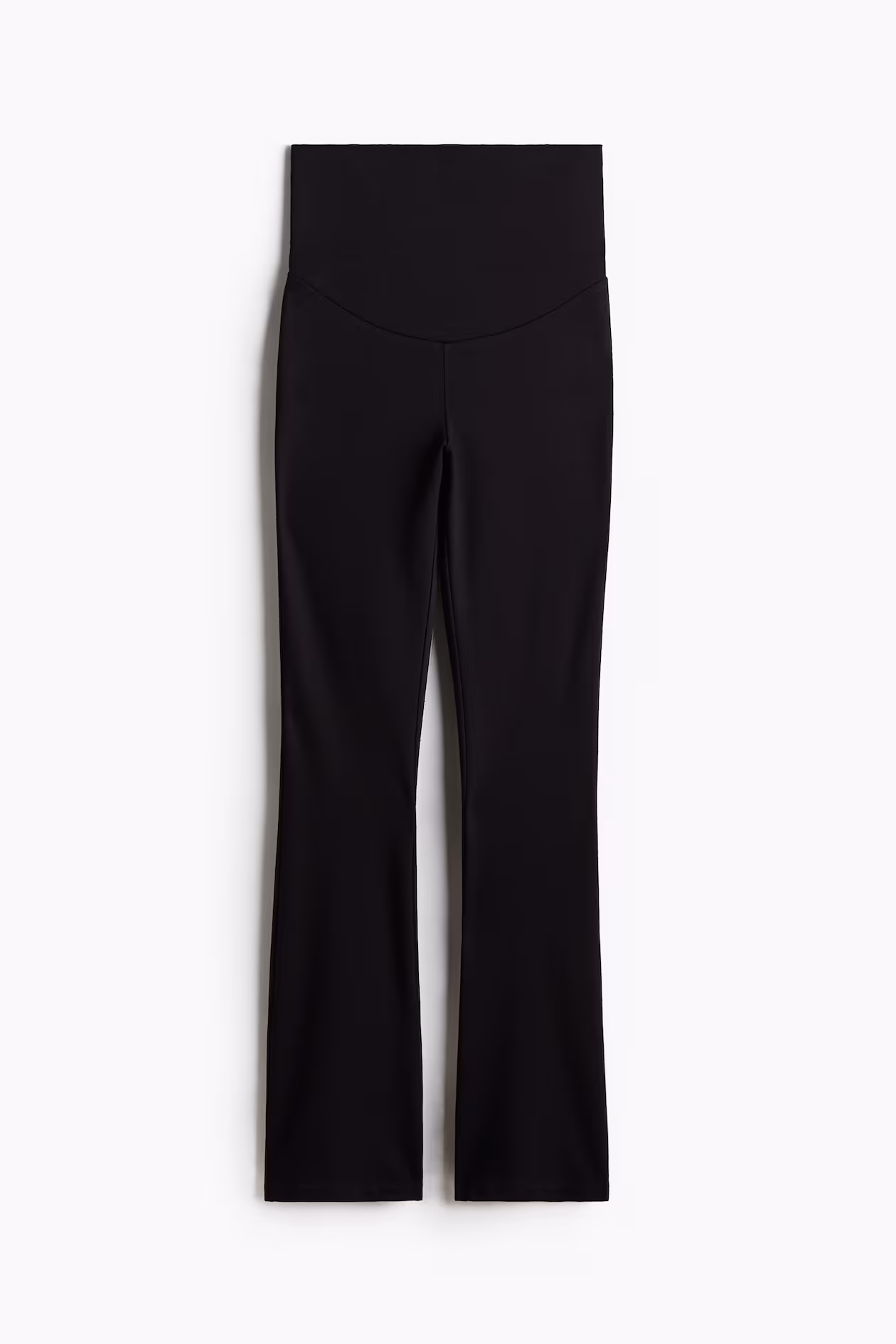 Pants in soft, viscose-blend jersey. Wide waist panel for best fit and slim legs with flared hems.