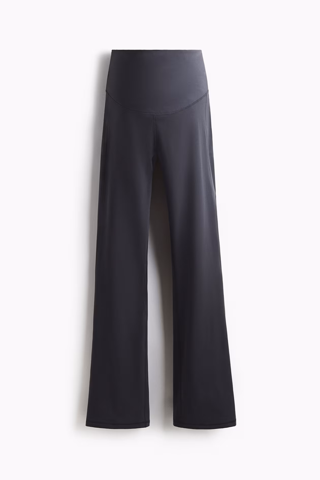 Flared sports leggings in functional fabric made with SoftMove™ for the ultimate in softness and comfort plus contouring support, and DryMove™ to wick away moisture from skin. Wide, foldover waistband panel for comfort during and after pregnancy.