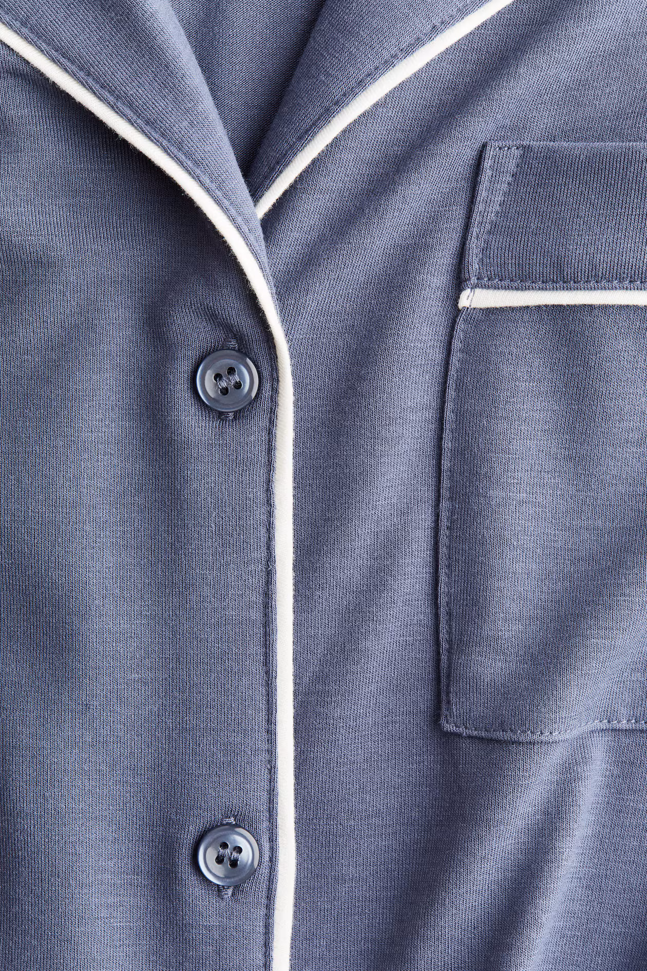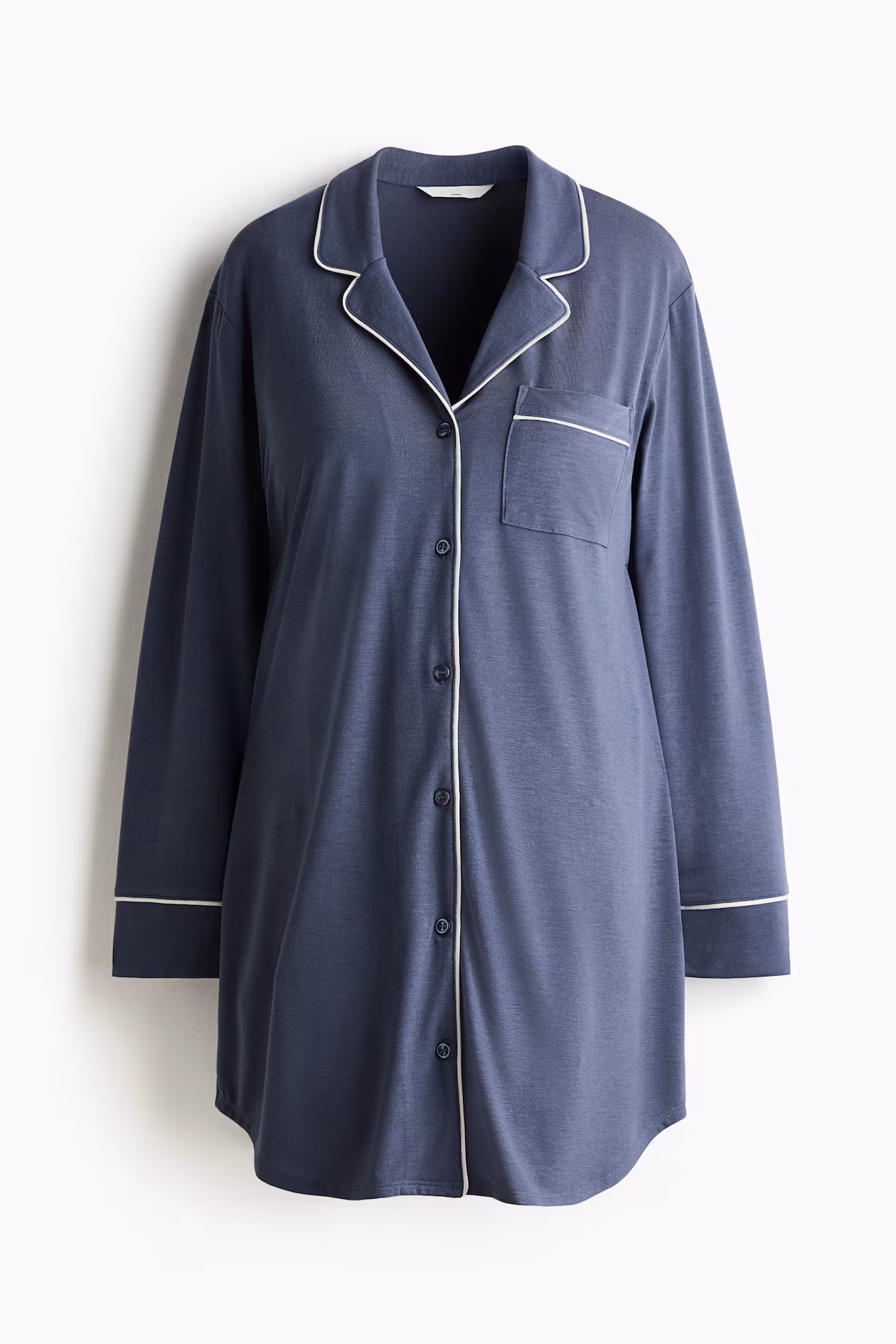Loose-fit, long-sleeved nightshirt in soft jersey with accent-colored piping. Resort collar, buttons at front, and a patch chest pocket. Gently rounded hem.
