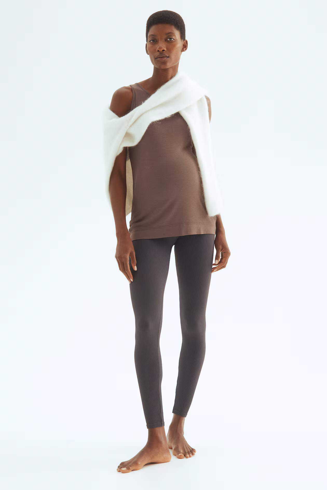 Leggings in ribbed jersey with a wide, elasticized waistband for best fit. Designed with a minimum number of seams for added comfort and increased freedom of movement.
