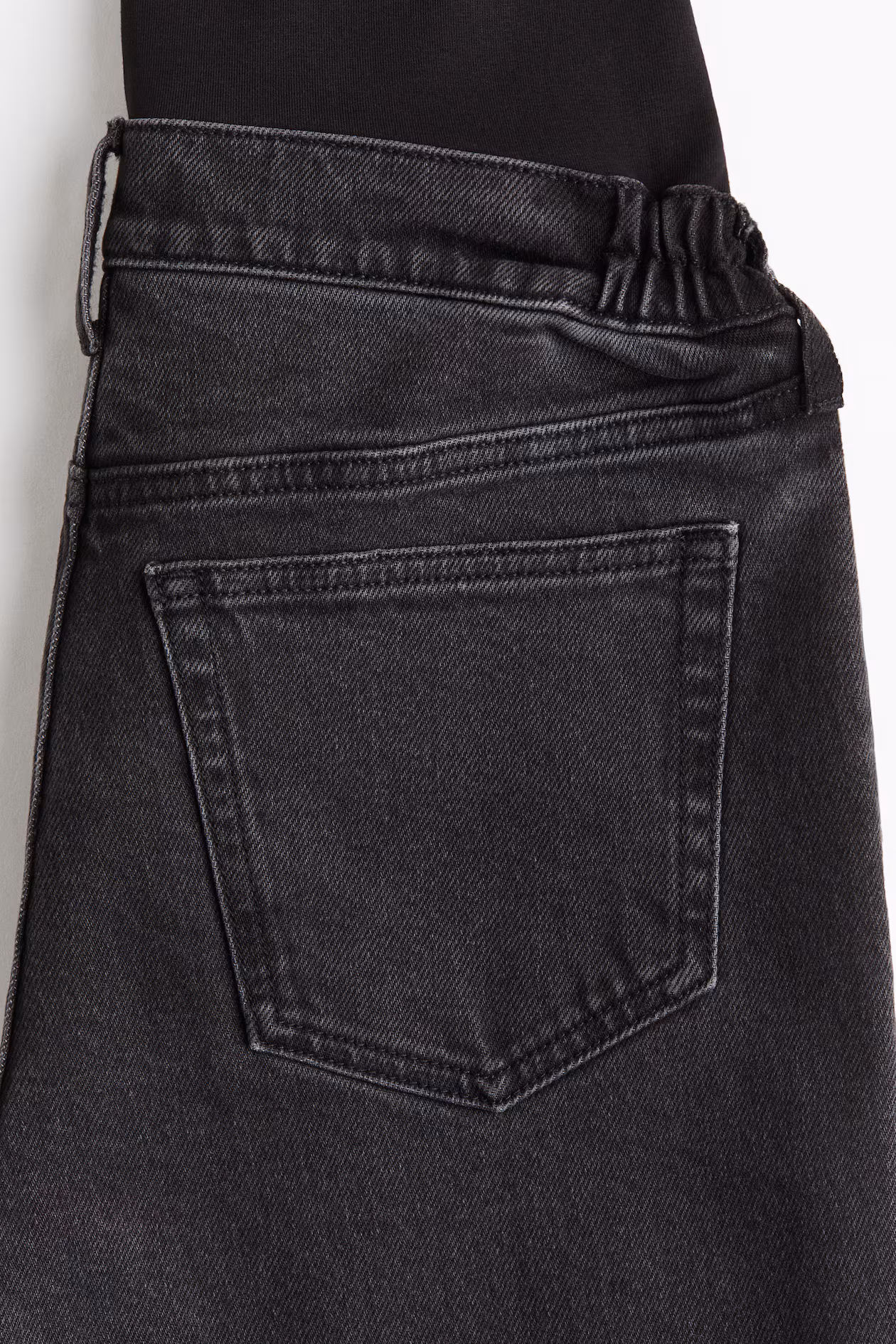 5-pocket jeans in cotton denim. Wide jersey waistband panel for best fit, mock fly with button, and straight, ankle-length legs.