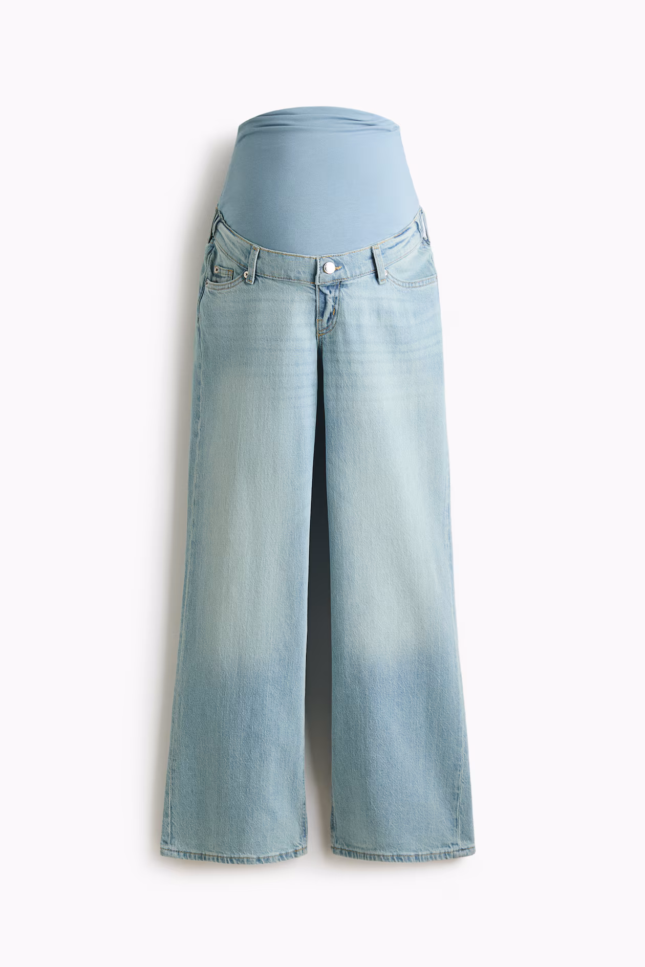 5-pocket jeans in cotton denim with gentle stretch for good comfort. Wide jersey waistband panel for good fit, elastic at sides of waistband, and mock fly with button. Straight legs.