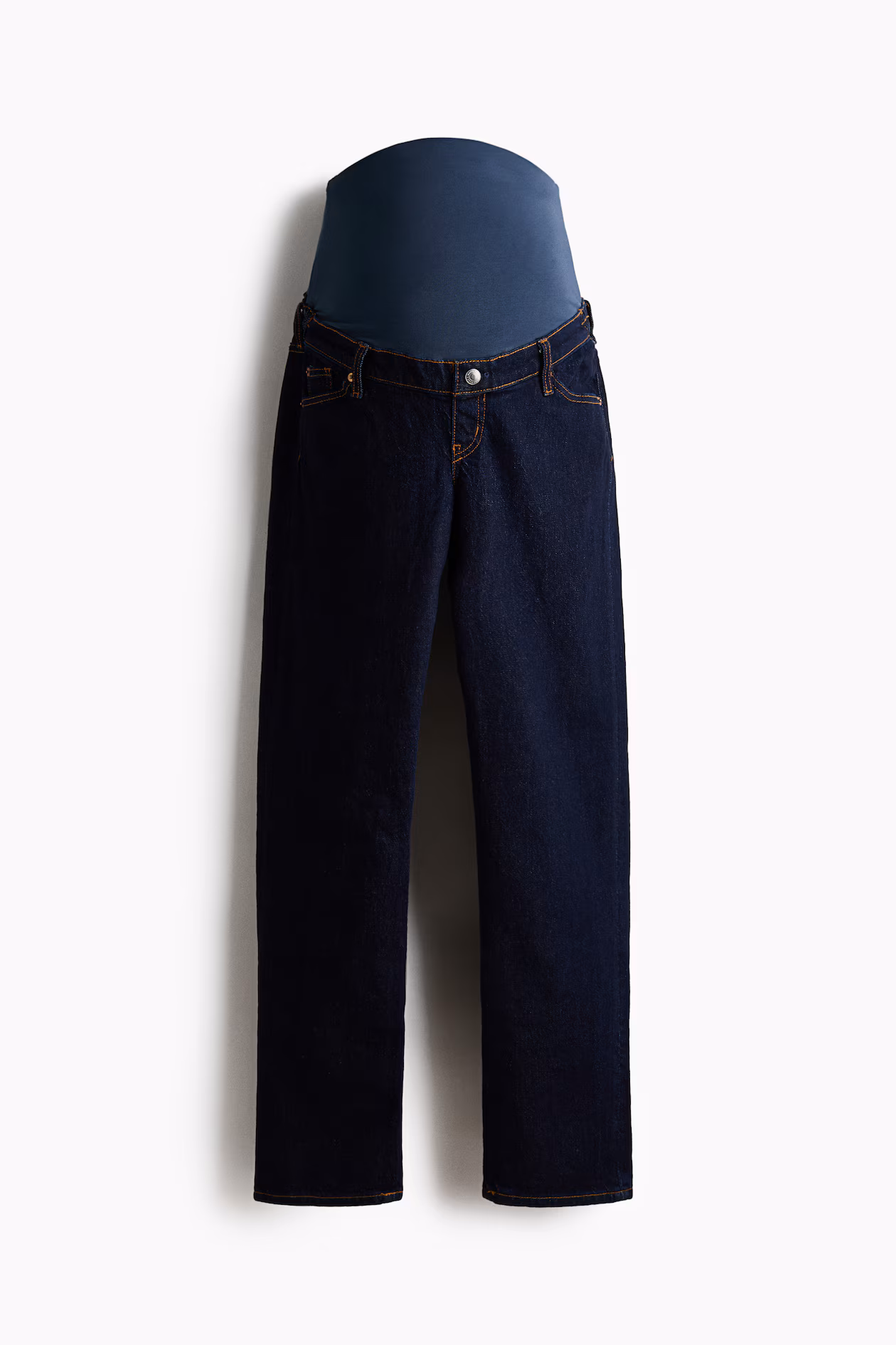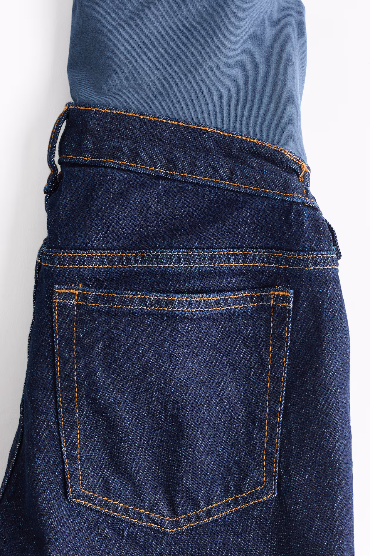 5-pocket jeans in cotton denim with gentle stretch for good comfort. Wide jersey waistband panel for good fit, elastic at sides of waistband, and mock fly with button. Straight legs.