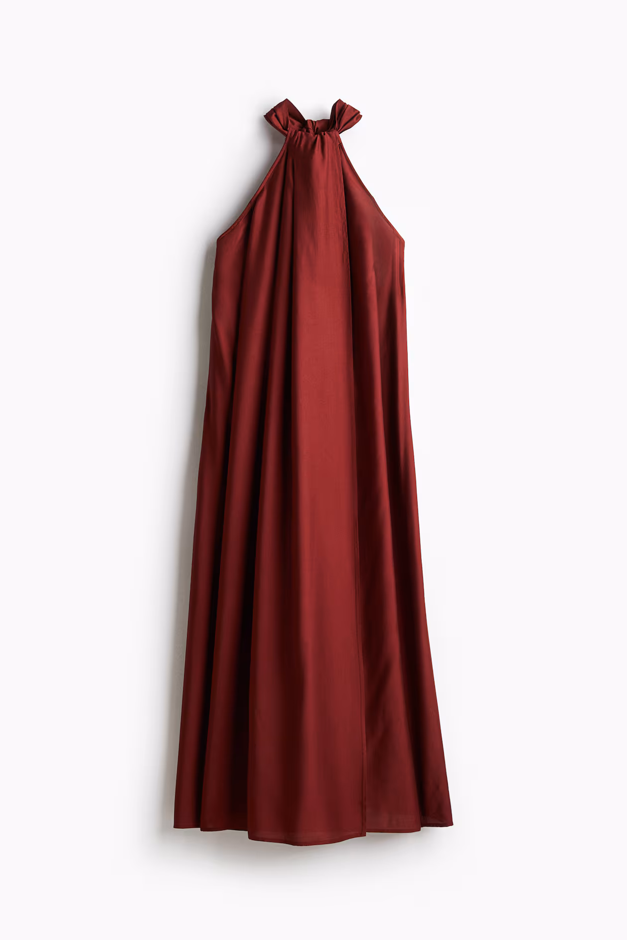 Loose-fit maxi dress in an airy weave with a wide halterneck strap that tunnels through the front and ties at the back. Features a deep, round cut at the back and pleats at the front and back for added volume and a flared silhouette. Unlined.