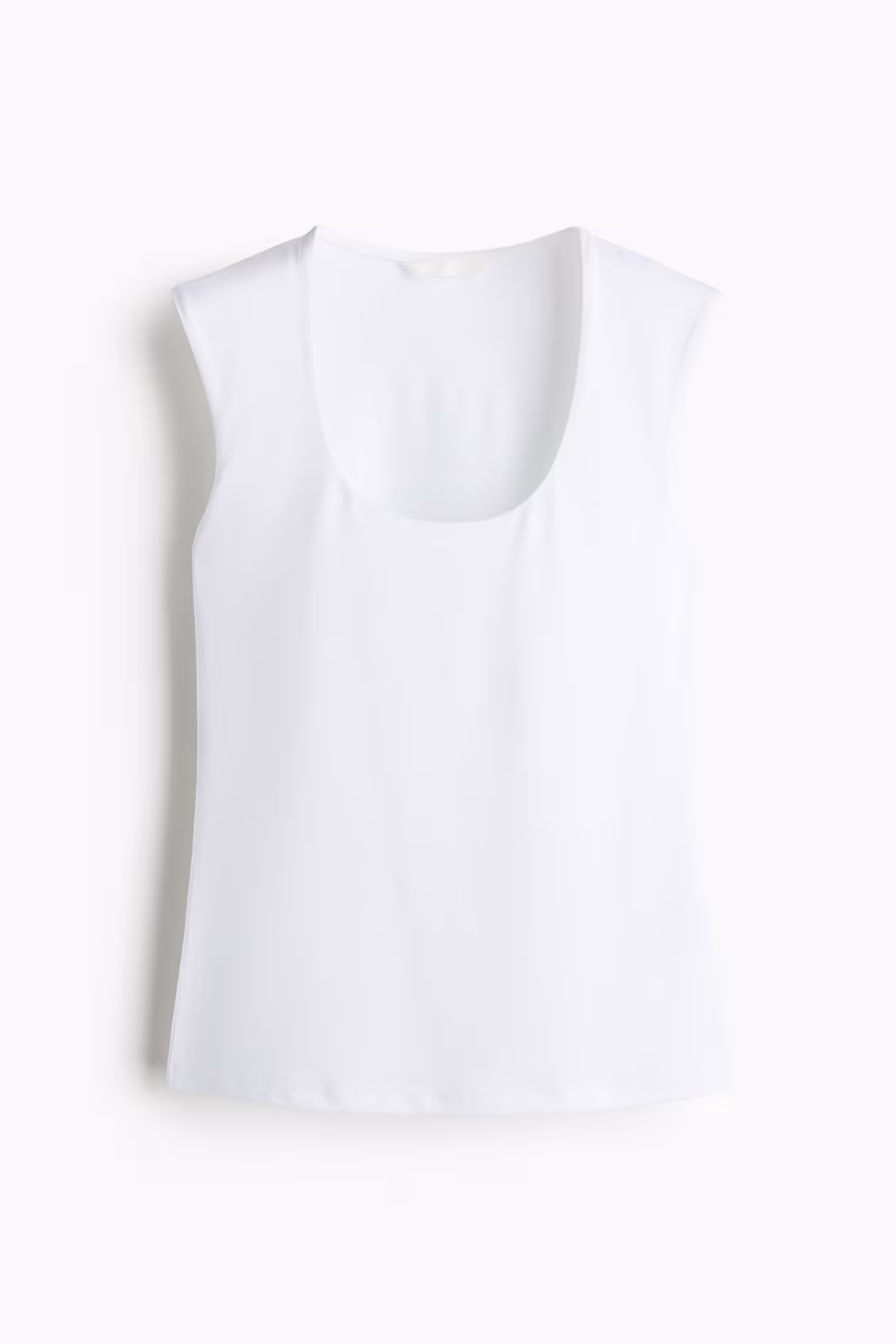 Fitted sleeveless top in microfiber. Softly shaped square neckline and a straight-cut hem. Partly lined.