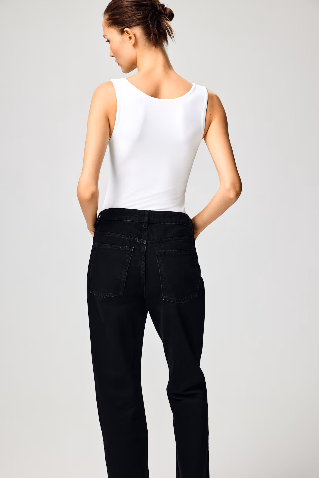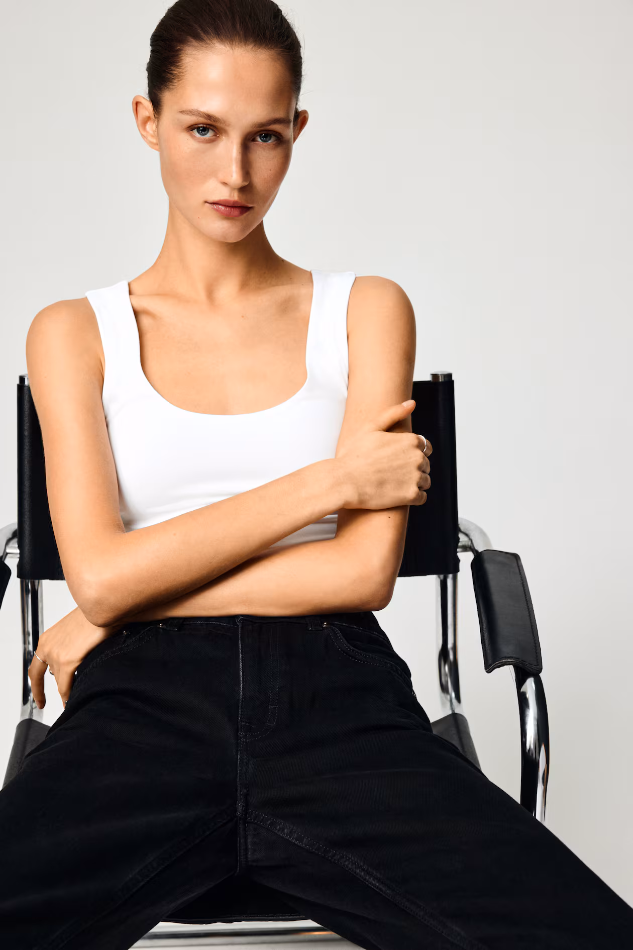 Fitted tank top in soft microfiber. Scoop neck and straight-cut hem. Lined.