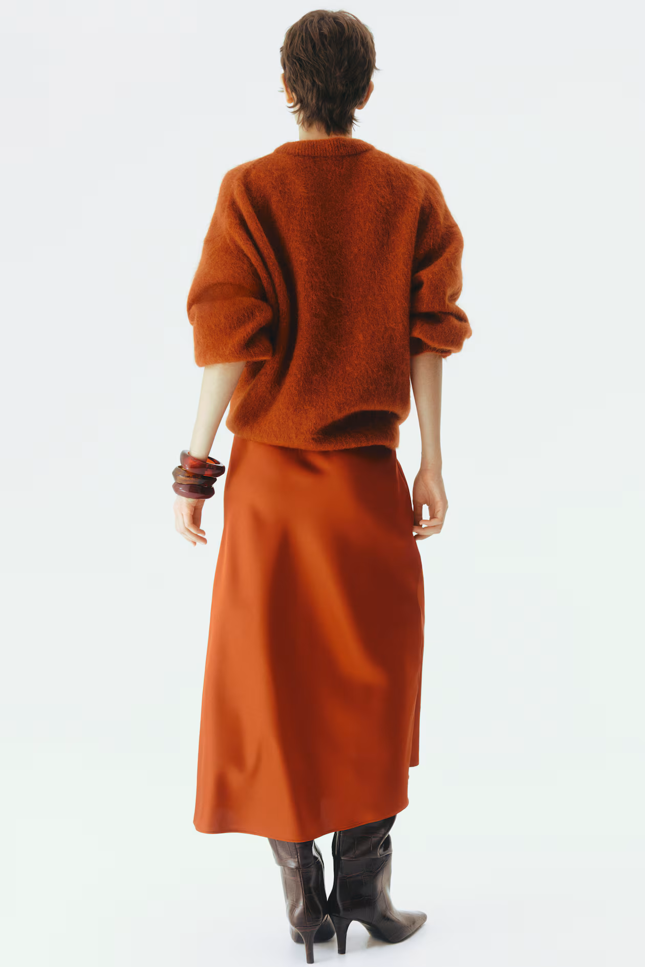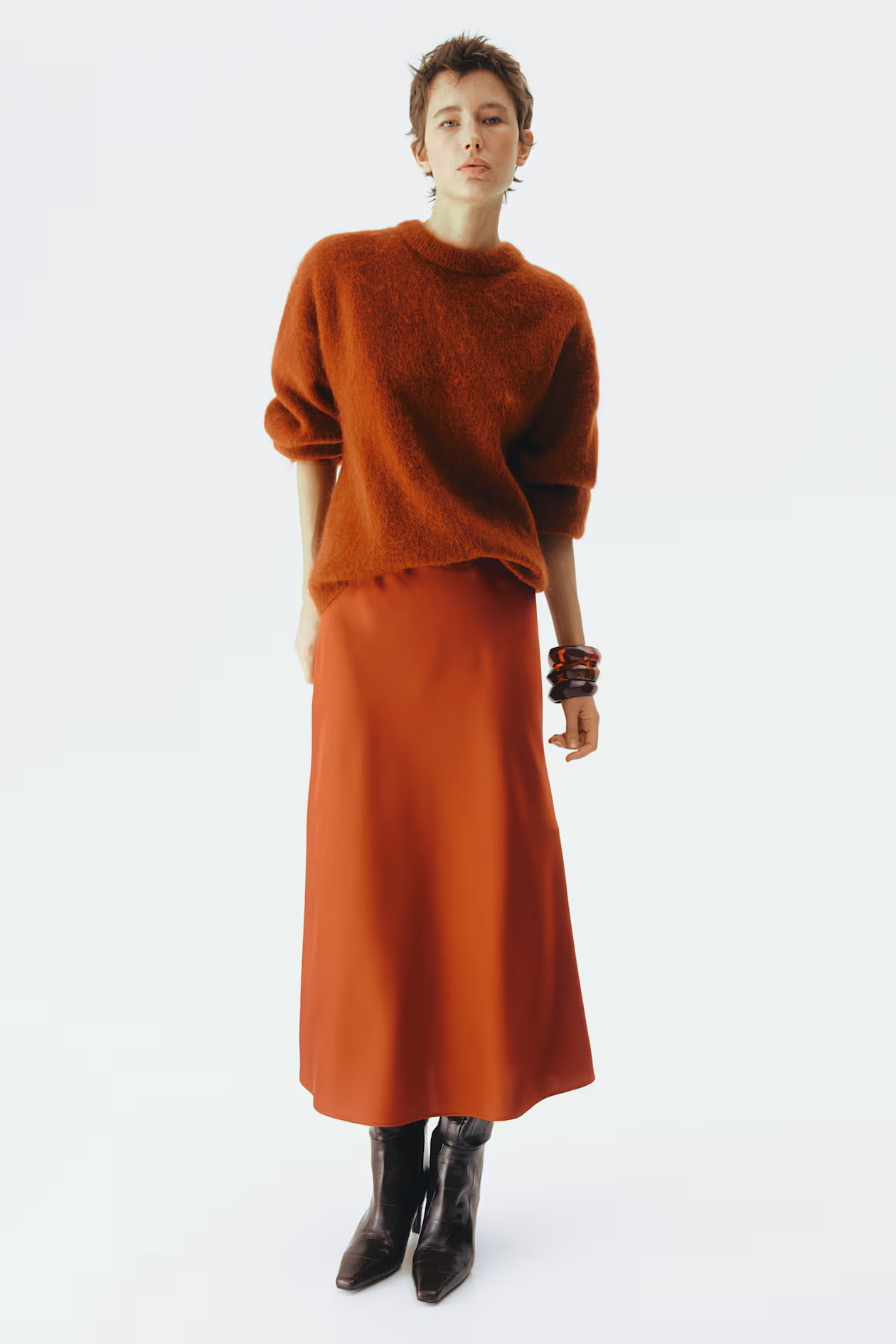 Midi skirt in softly draped woven fabric. Concealed, elasticized waistband and a gently flared hem. Unlined.