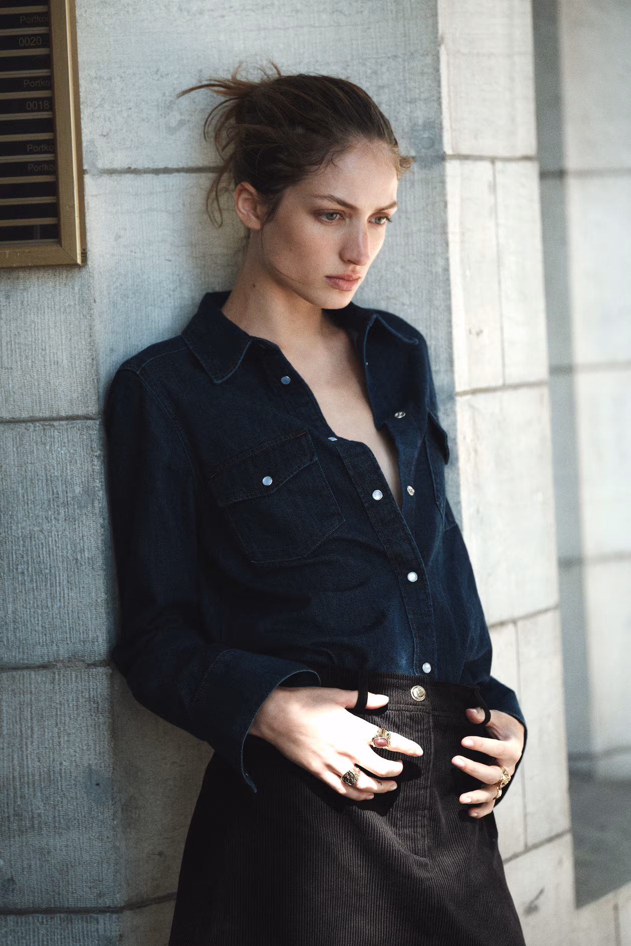 A-line mini skirt in woven fabric. Zip fly with button. Unlined.