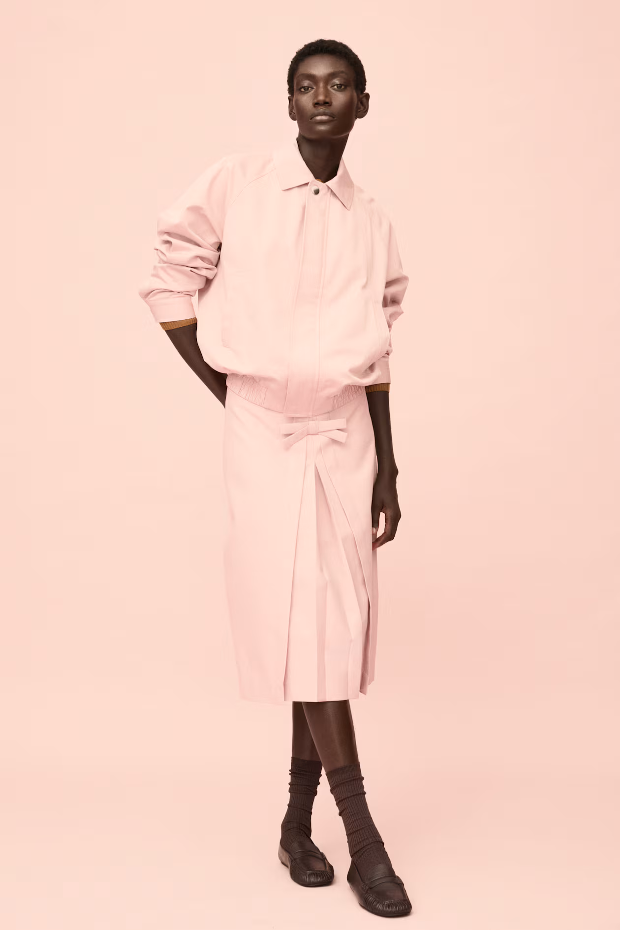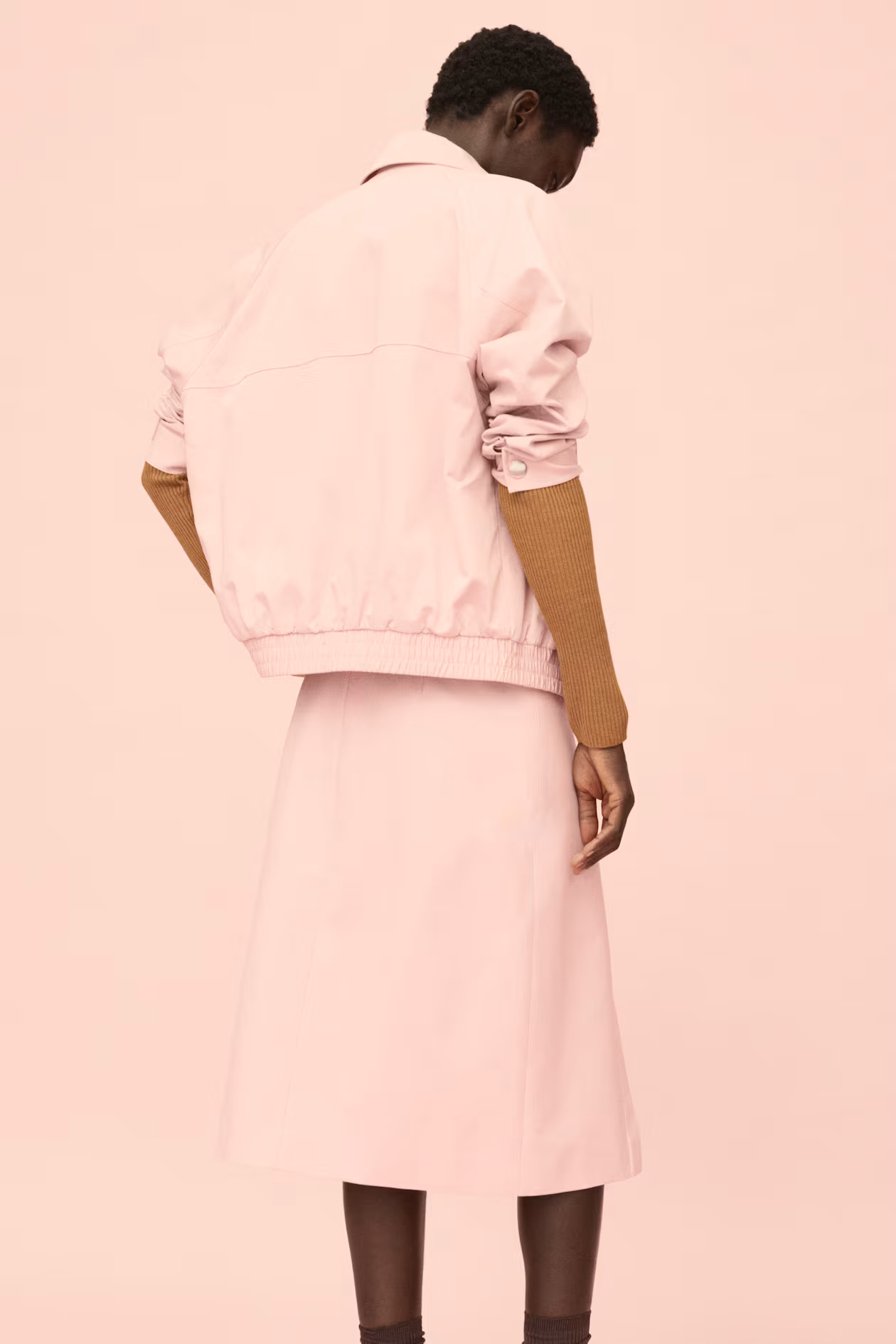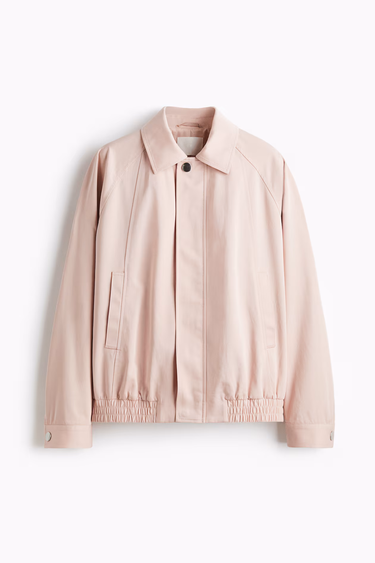 Oversized jacket in a woven modal and cotton blend. Collar, zipper at front with wind flap and concealed snap fasteners, and welt side pockets. Raglan sleeves with a snap fastener at cuffs. Smocked elastic at hem. Lined.