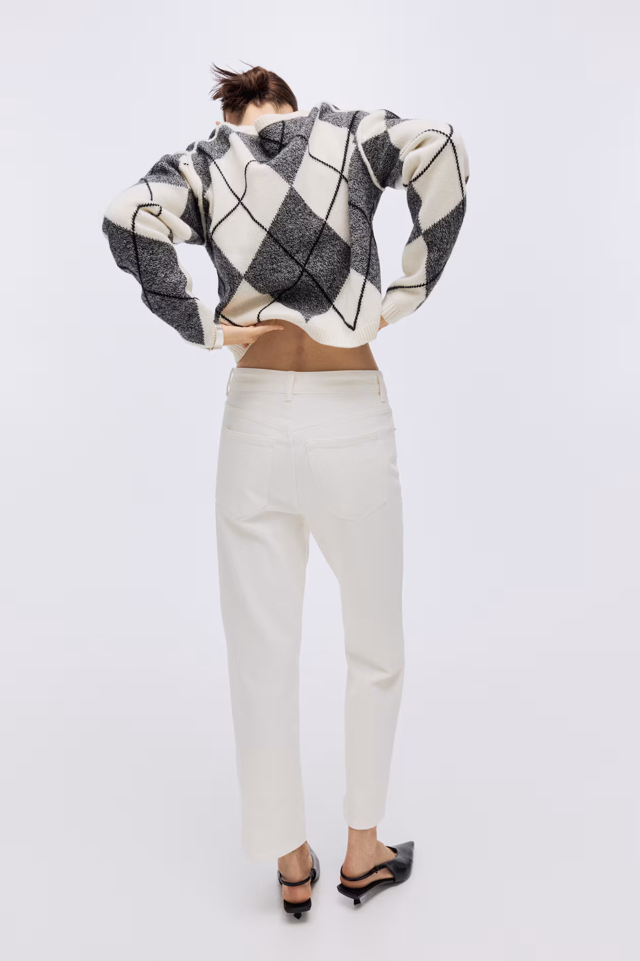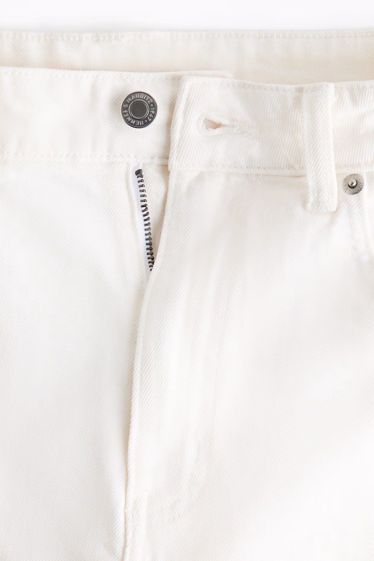 5-pocket jeans in denim with gentle stretch for good comfort. Slim fit from hip to thigh. High waist, zip fly with button, and ankle-length straight legs, tapered at hem.