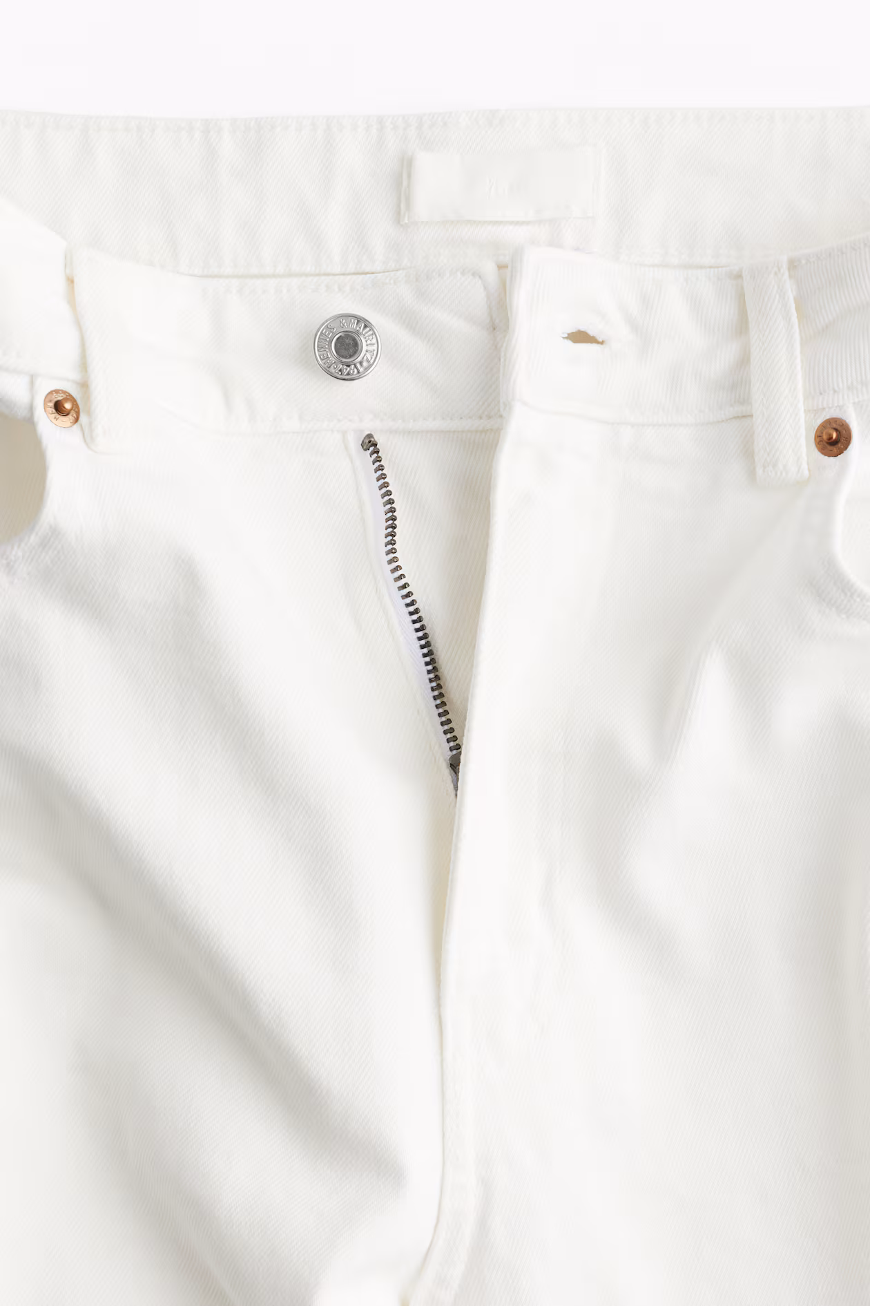 5-pocket jeans in denim with gentle stretch for good comfort. Slim fit from hip to thigh. High waist, zip fly with button, and ankle-length straight legs, tapered at hem.