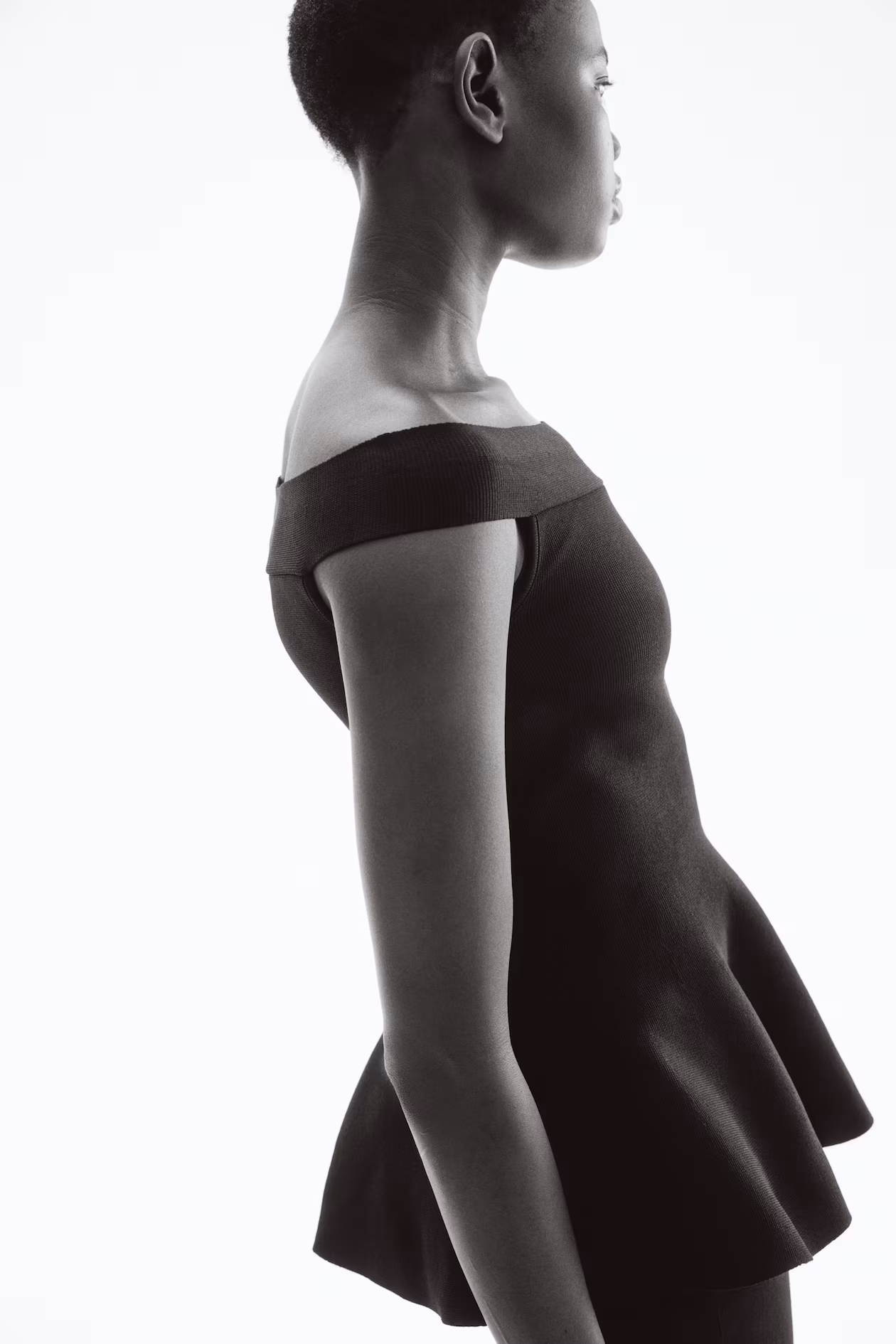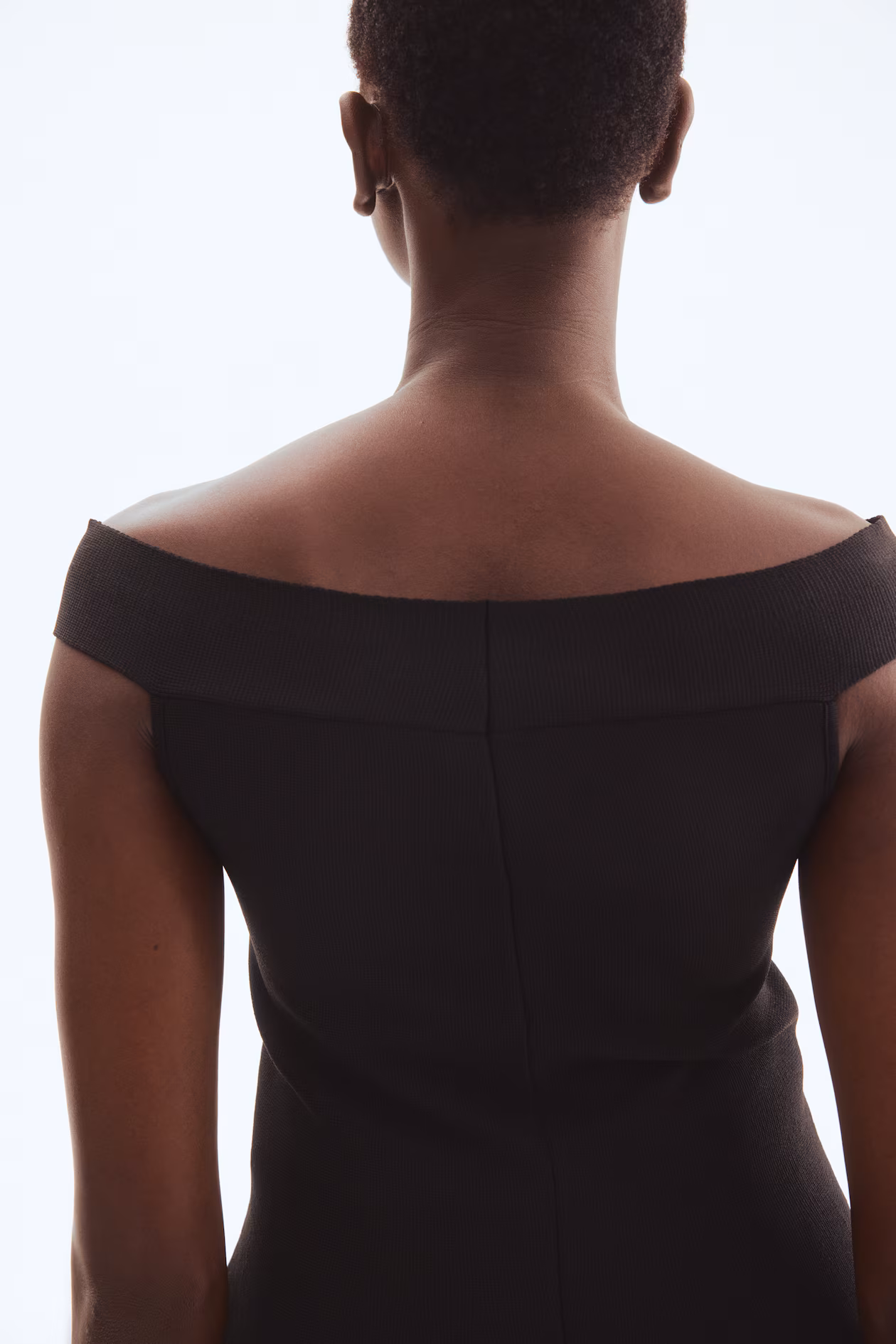 Long, slim-fit, off-the-shoulder top in densely knit fabric. Flared from waist to hem.
