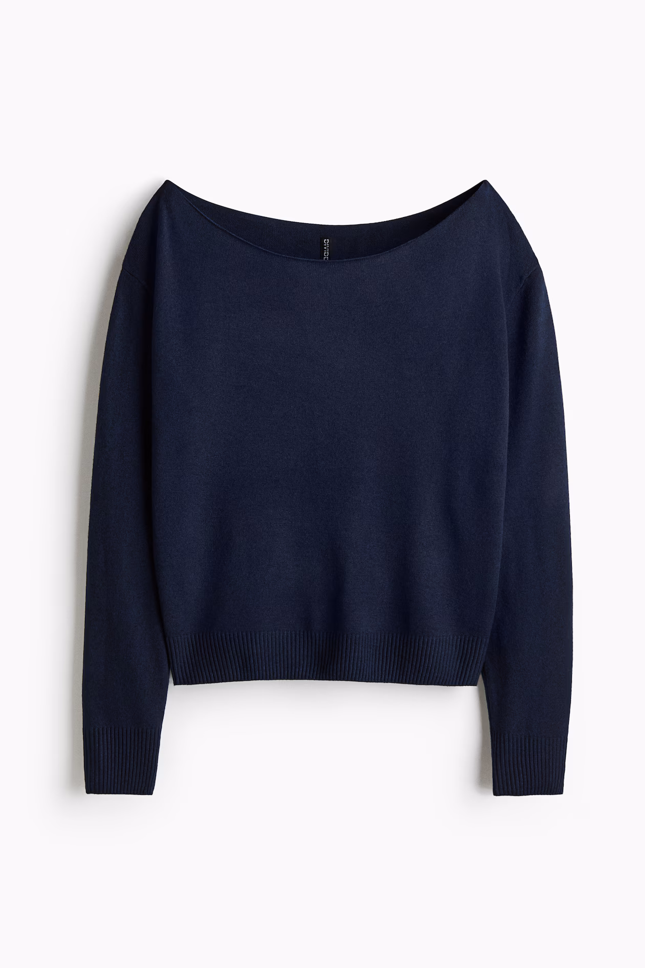 Off-the-shoulder sweater in a soft, fine knit. Neckline with rolled edge, dropped shoulders, and long sleeves. Ribbing at cuffs and hem.