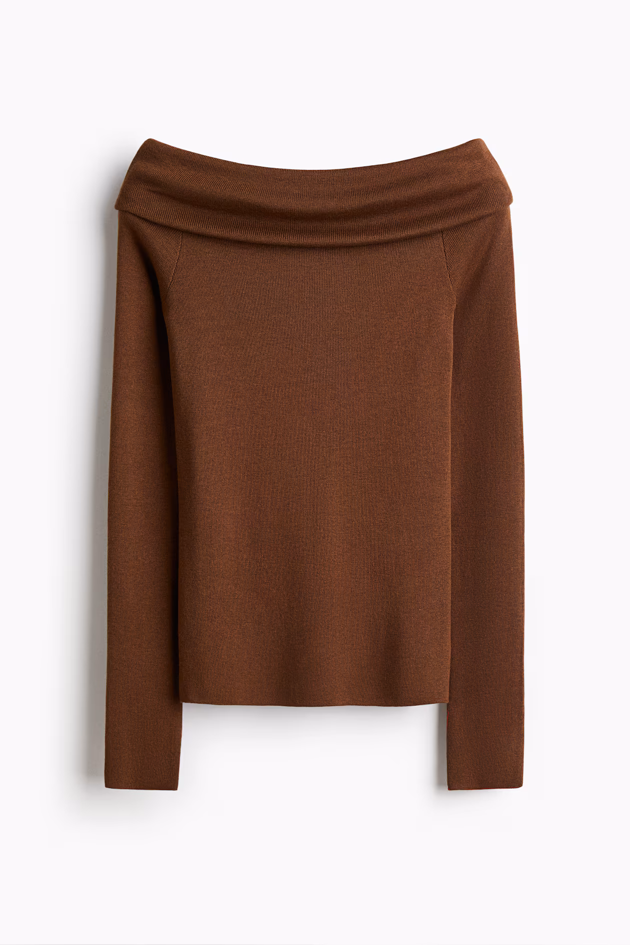 Fitted, long-sleeved sweater in a soft knit. Wide, foldover upper edge.