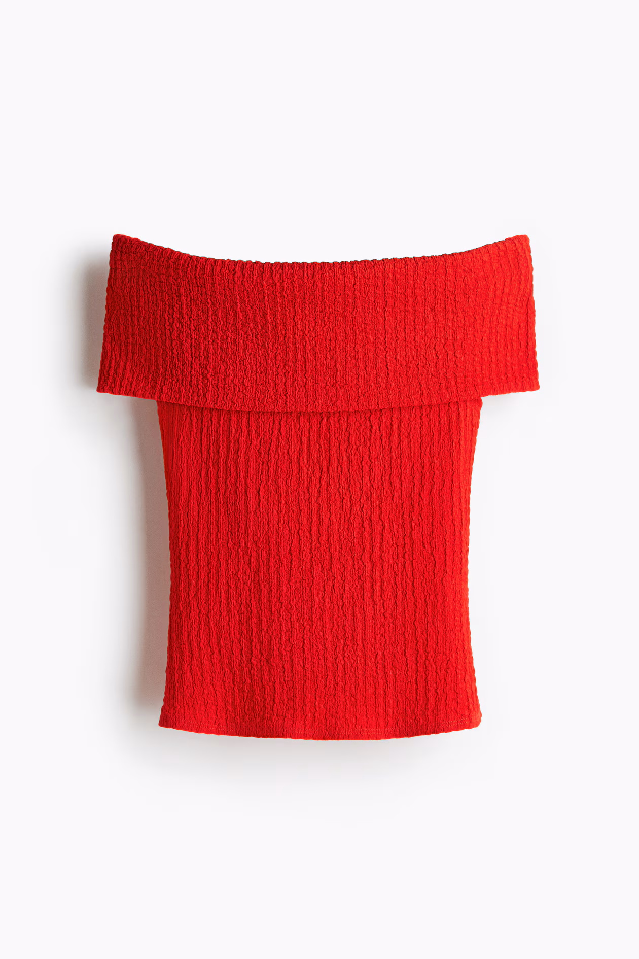 Fitted off-the-shoulder top in textured jersey. Wide, foldover upper edge.