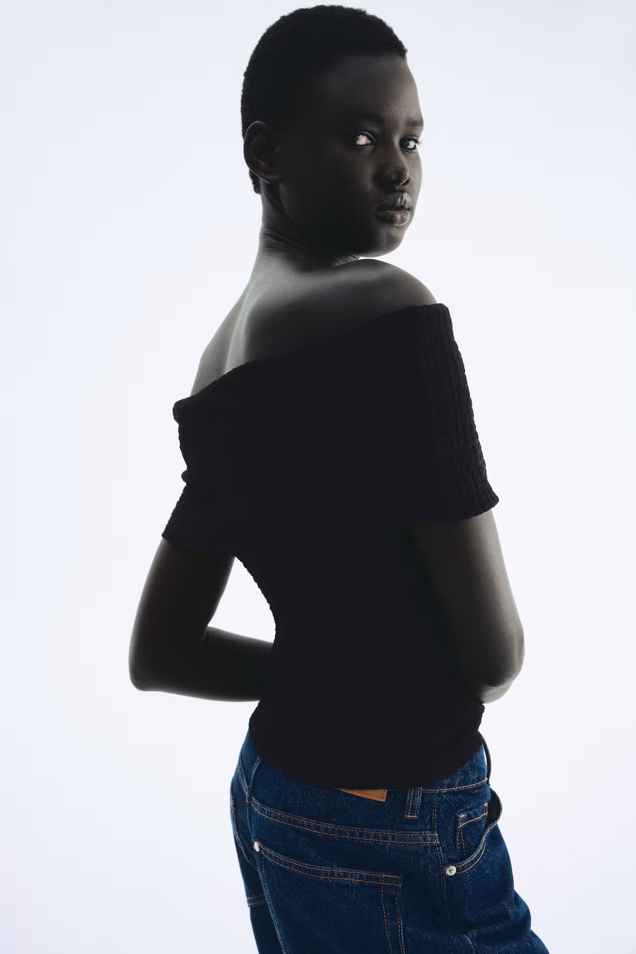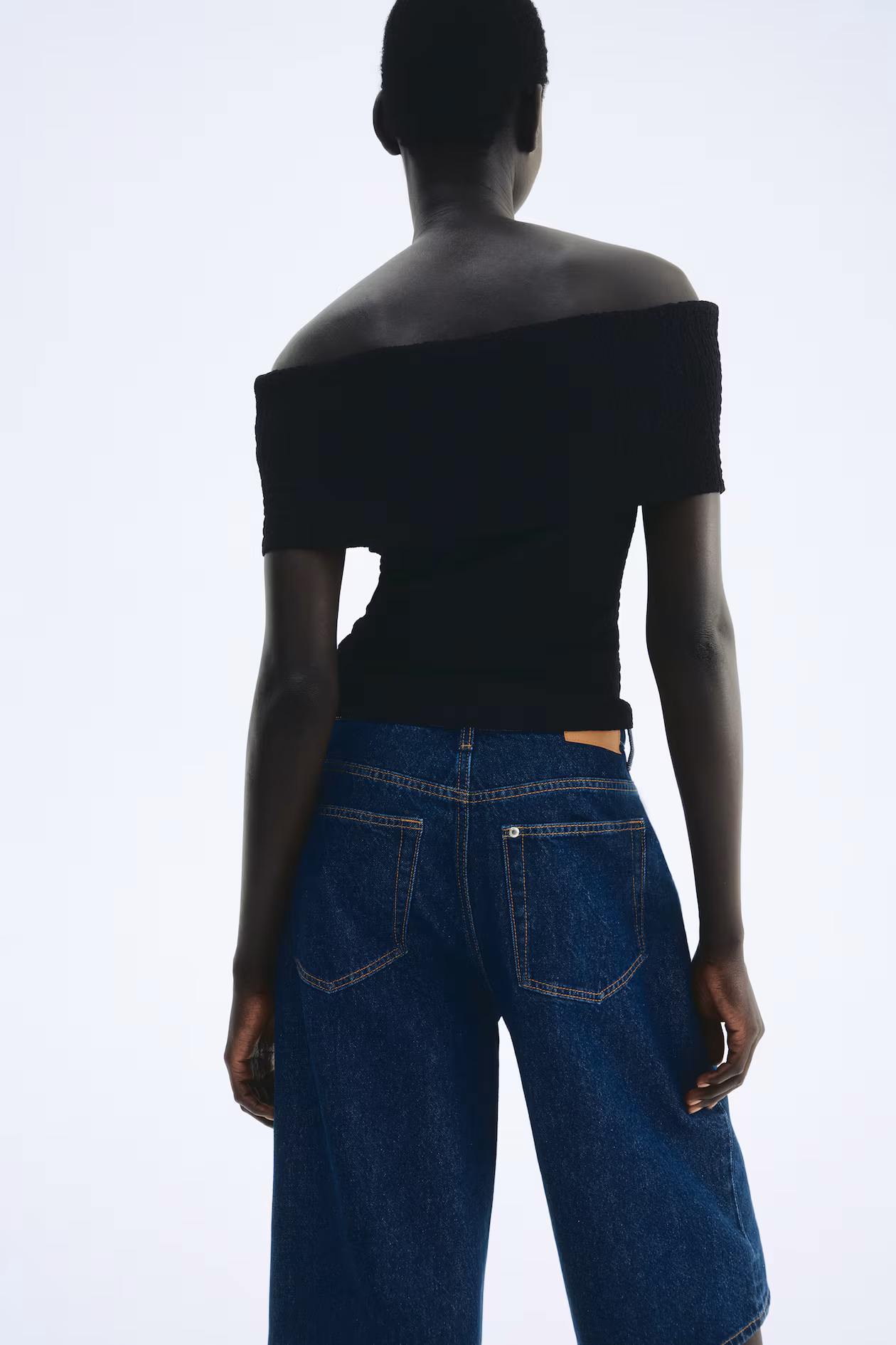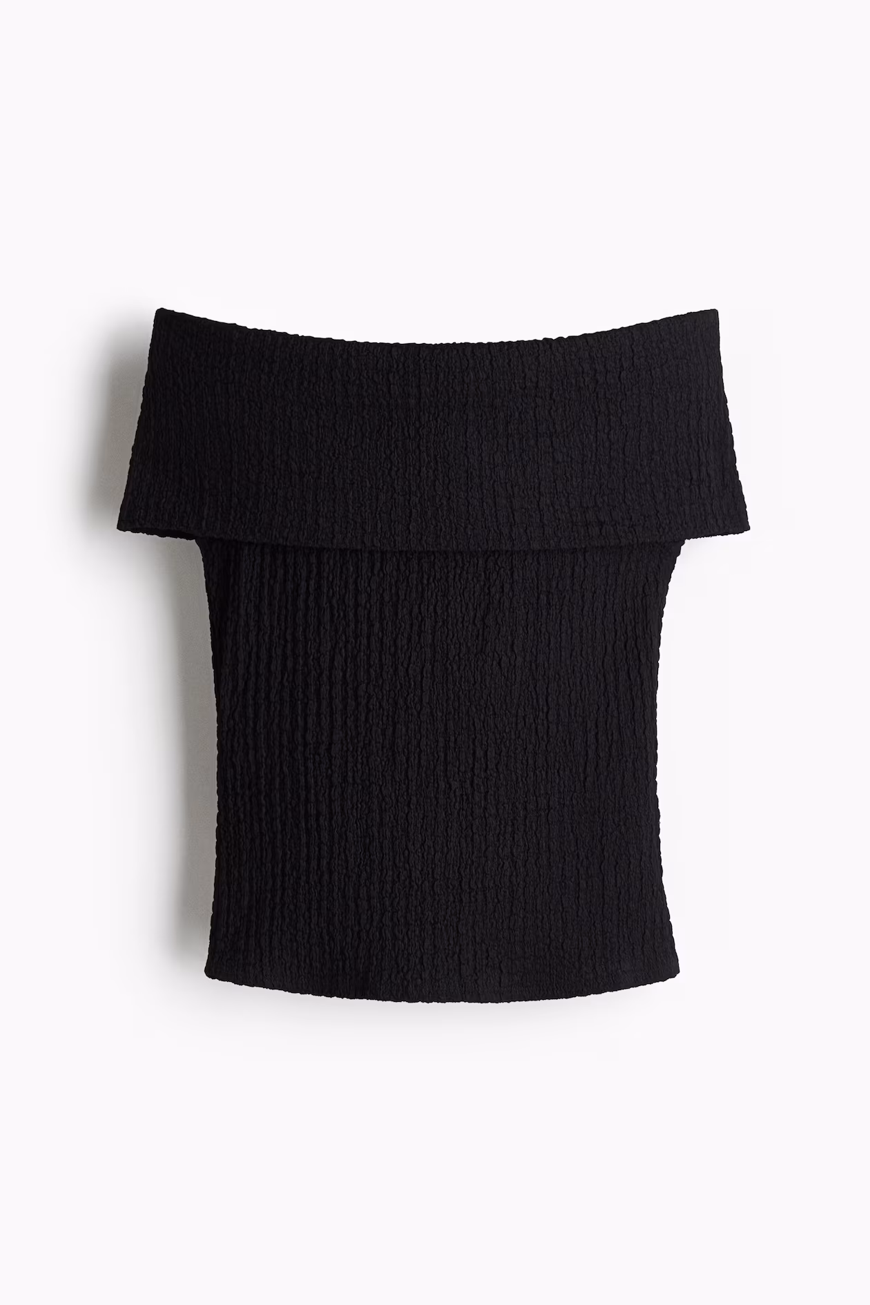 Fitted off-the-shoulder top in textured jersey. Wide, foldover upper edge.