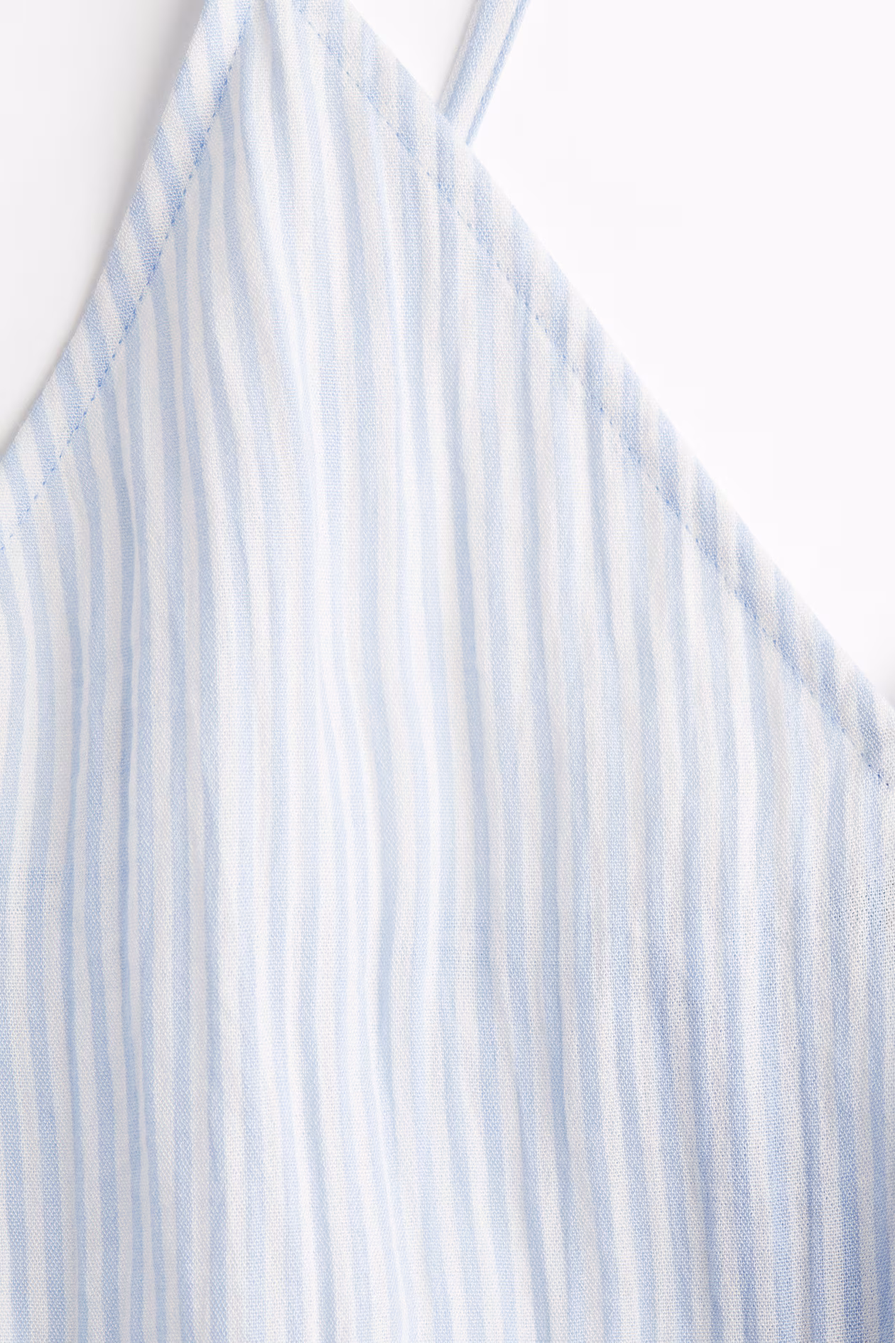 Short dress in woven, crinkled fabric with a fitted bodice. Narrow, adjustable shoulder straps crossed at back, V-neck at front, and open back with a concealed zipper. Unlined.