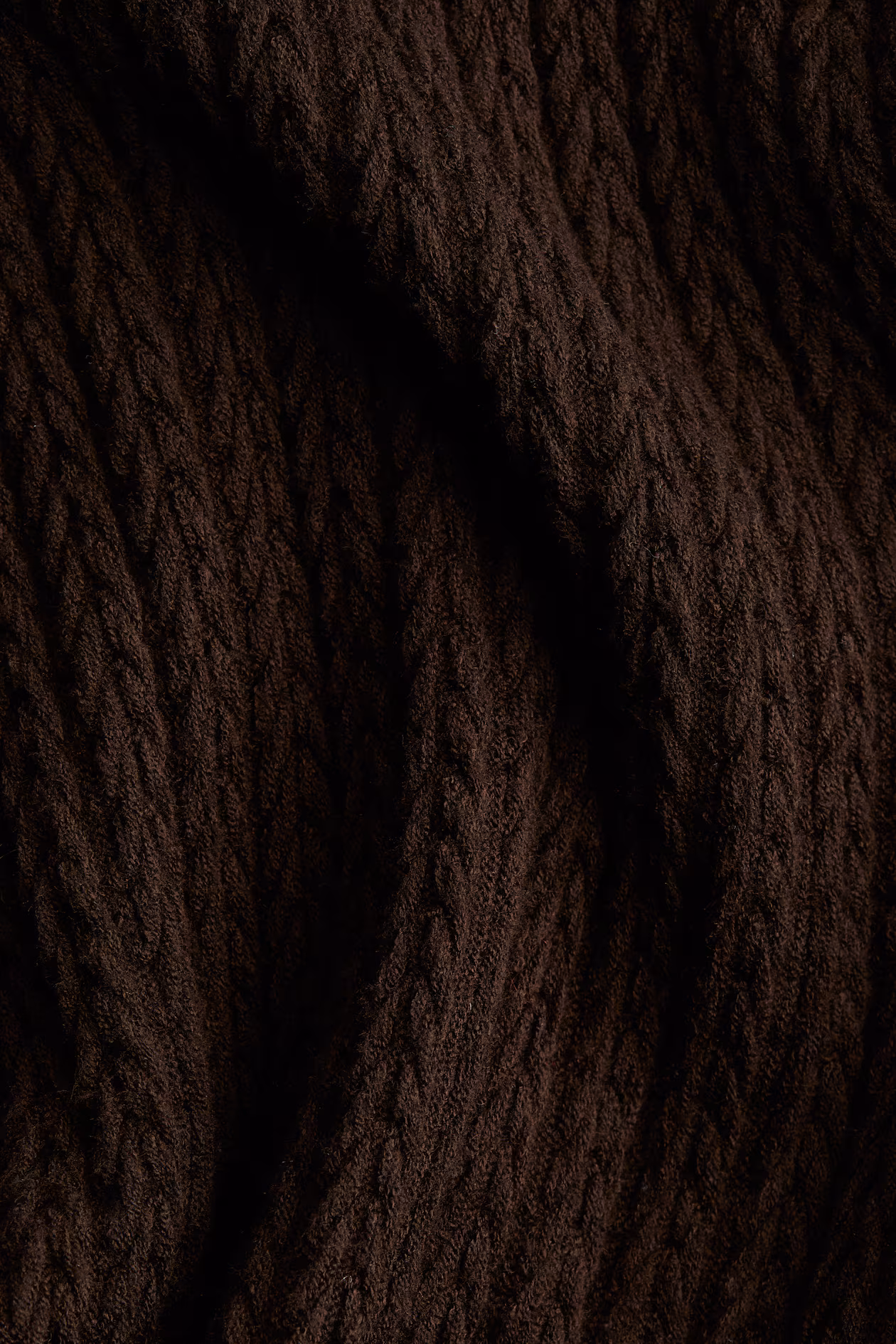 Short, oversized sweater in soft jersey with a cable-knit look. Collar, V-shaped opening at front, dropped shoulders, and long sleeves.