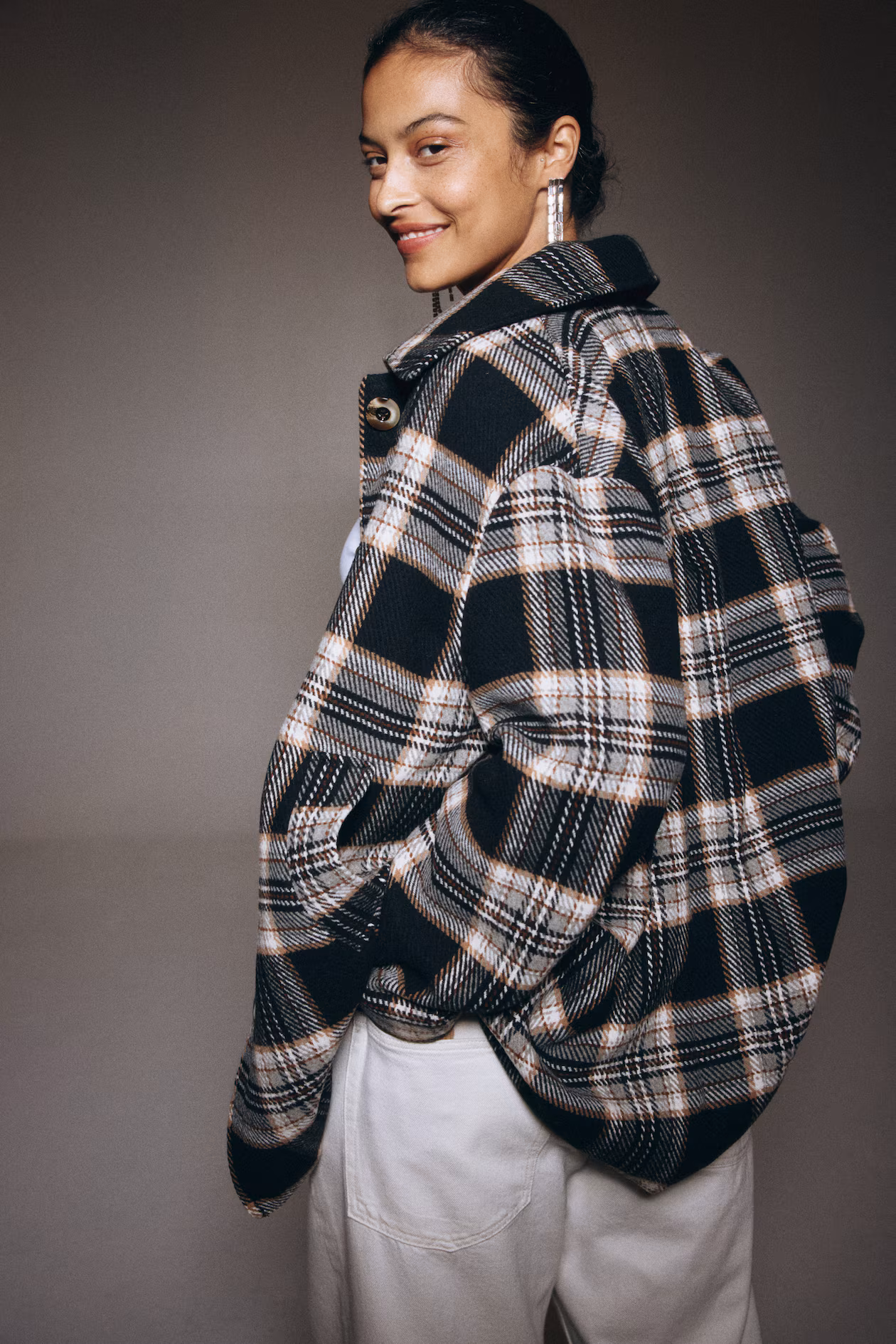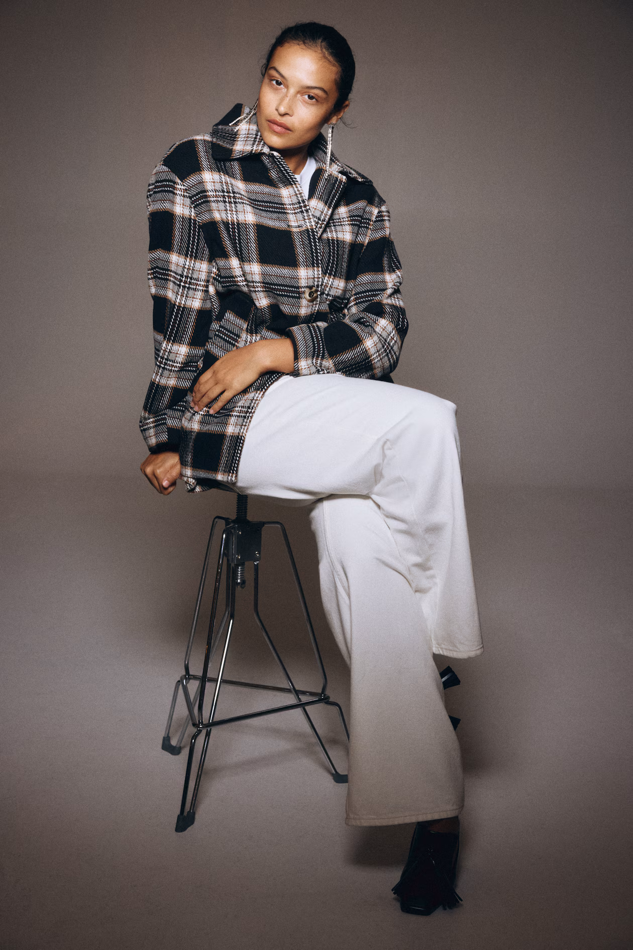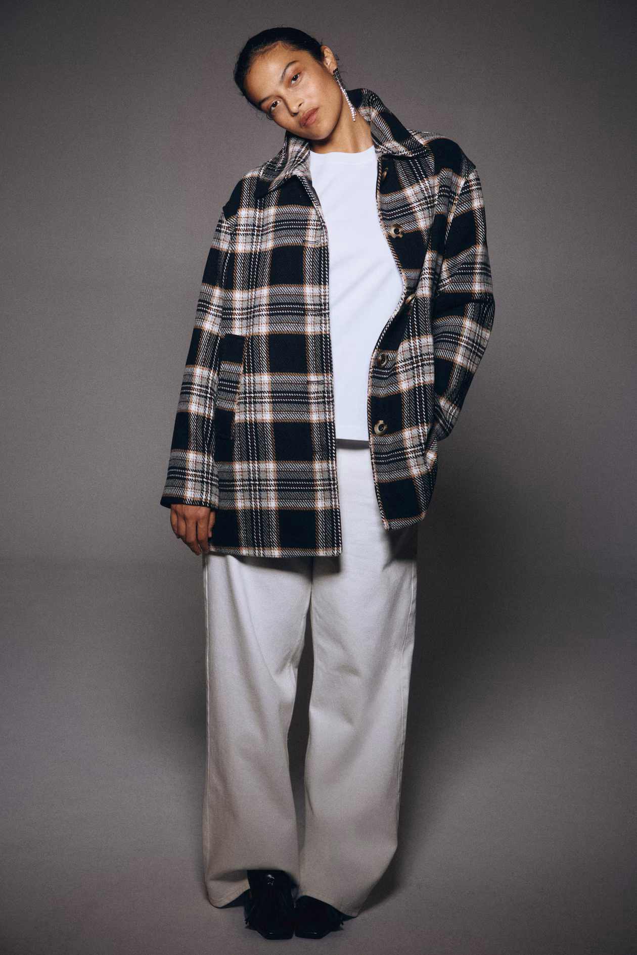 Oversized, knee-length coat in woven fabric. Collar, buttons at front, and welt side pockets. Dropped shoulders and long sleeves. Lined.