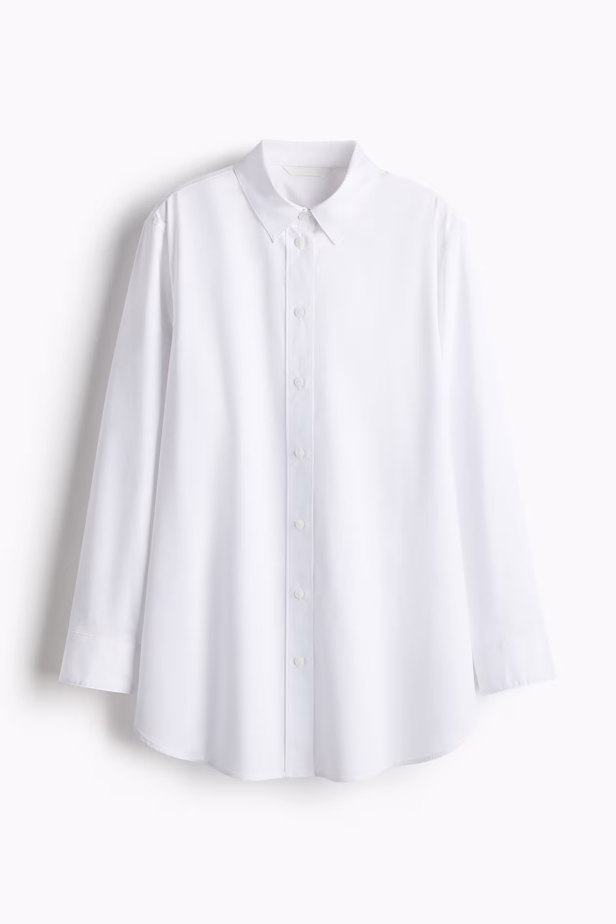 Oversized shirt in woven cotton. Collar, buttons at front, and gently dropped shoulders. Long sleeves, sleeve placket with link button, and button at cuffs. Rounded hem.