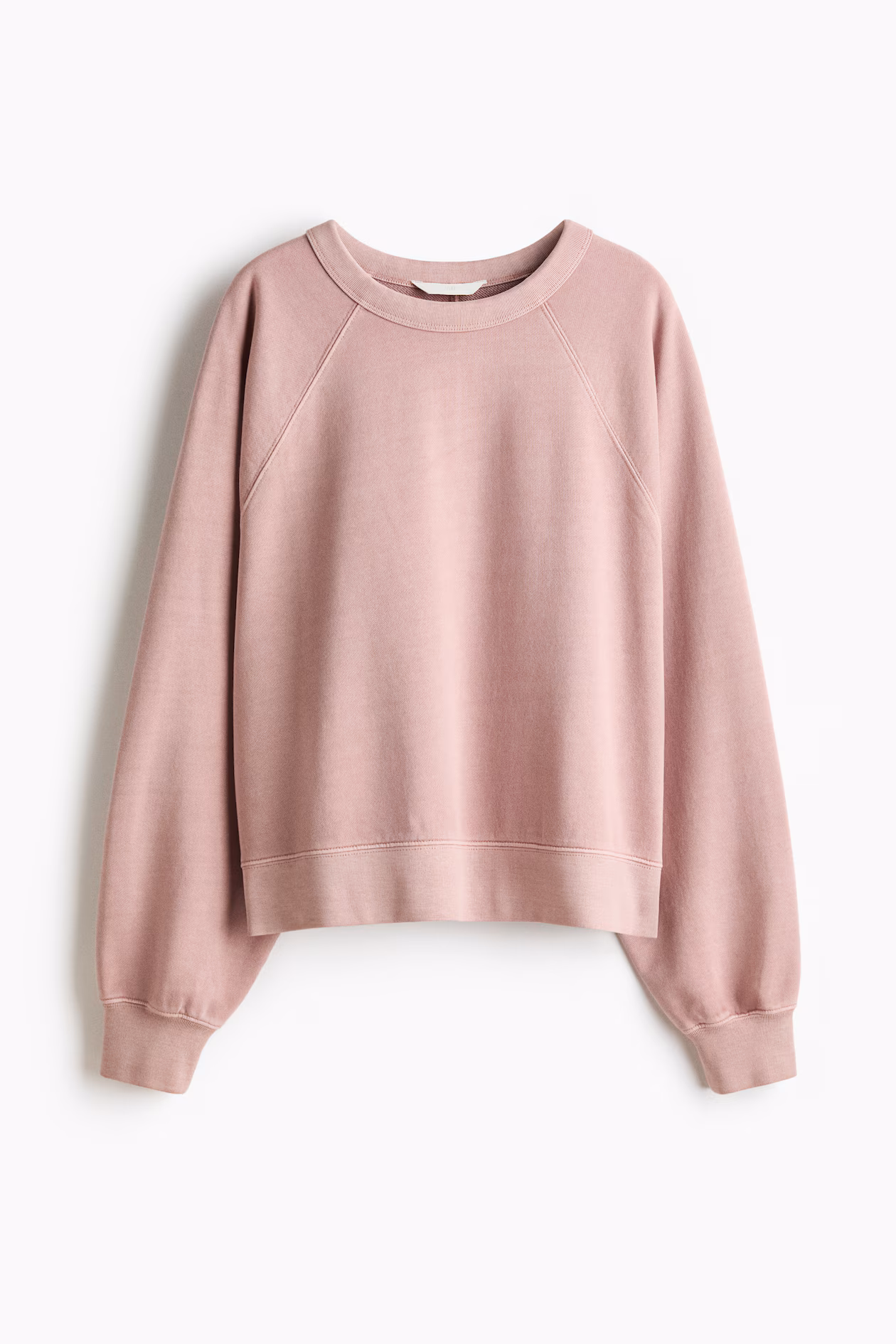 Oversized, washed-look sweatshirt in cotton. Round neckline, long raglan sleeves, and ribbing at neckline, cuffs, and hem.