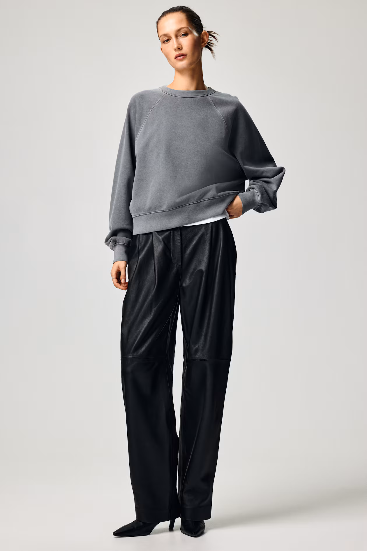 Oversized, washed-look sweatshirt in cotton. Round neckline, long raglan sleeves, and ribbing at neckline, cuffs, and hem.