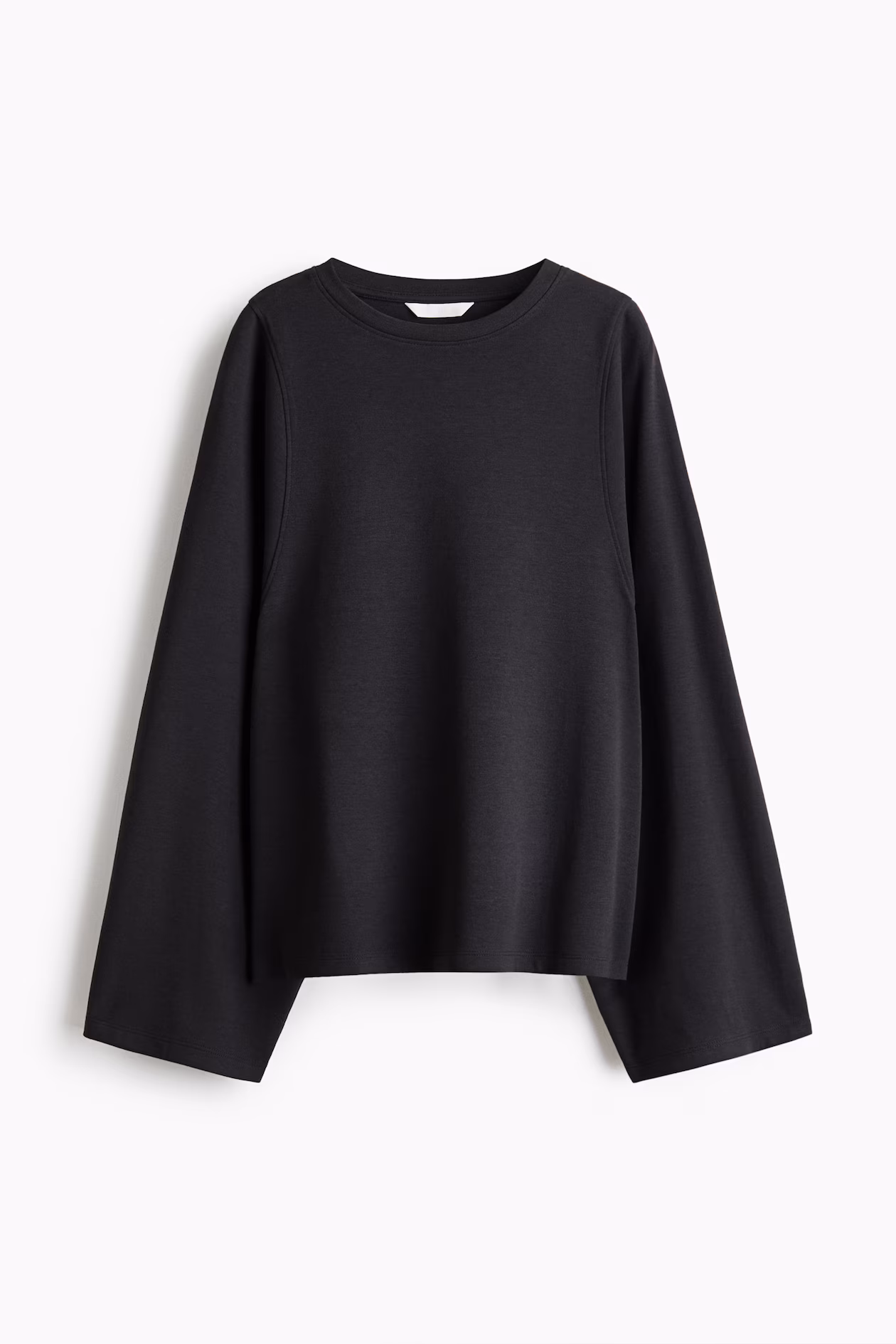 Long, oversized top in thick interlock jersey. Round neckline and long, wide sleeves.
