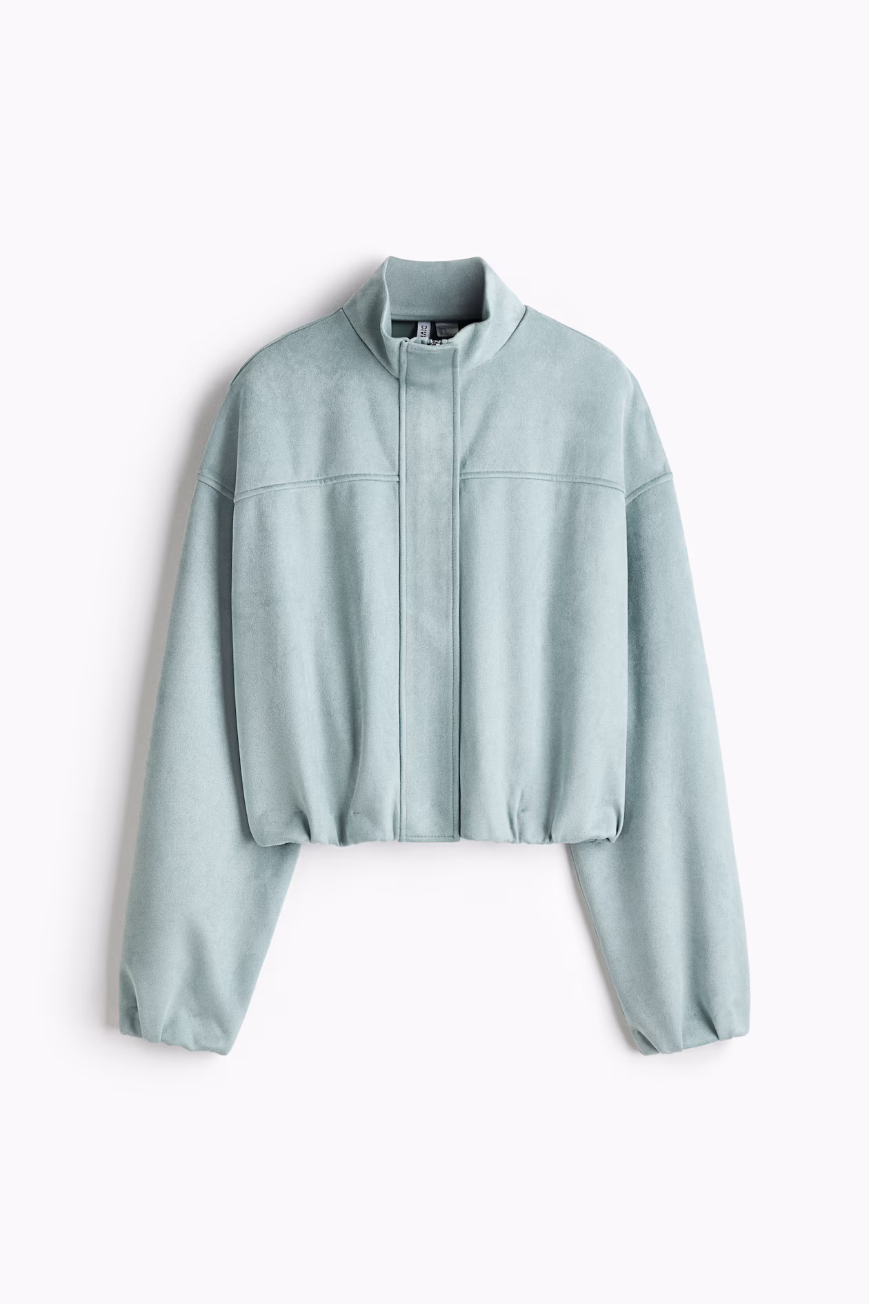 Oversized jacket in thick jersey with a soft, napped finish. Stand-up collar, zipper at front with wind flap and concealed snap fasteners, yoke at front, and dropped shoulder. Covered elastic at cuffs and hem. Lined.
